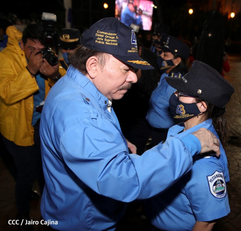En el acto, el Comandante Daniel Ortega ascendió al grado de Comisionados Generales a 9 comisionados mayores de la Policía Nacional. Tres varones y 6 mujeres policiales.