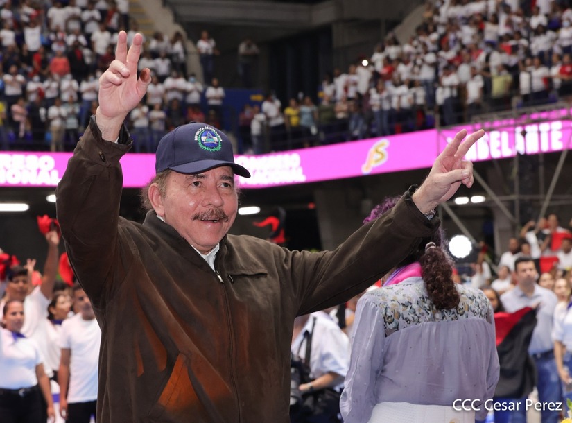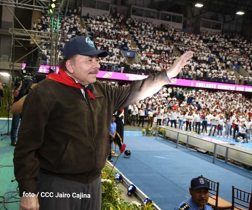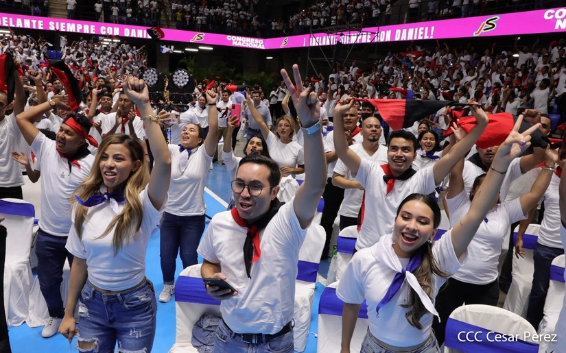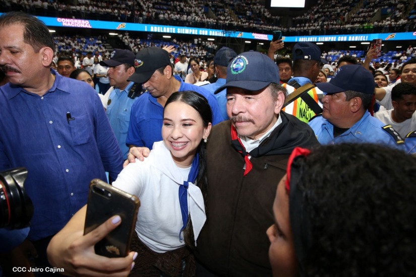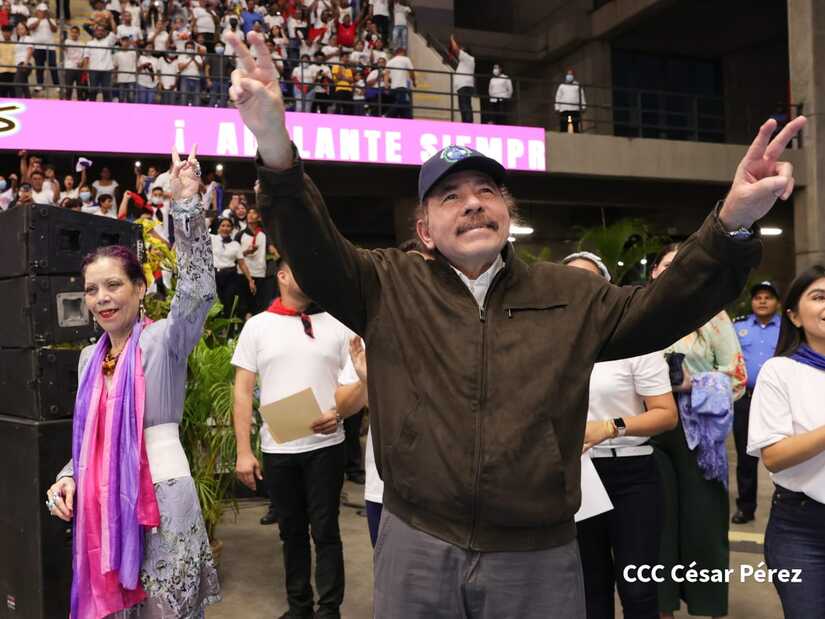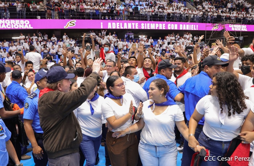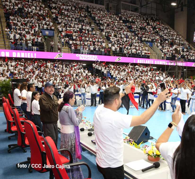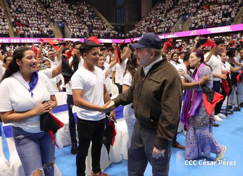 El Presidente Comandante Daniel Ortega y la Vicepresidenta Compañera Rosario Murillo participan en la clausura del Congreso Nacional de la Juventud Sandinista desde el Polideportivo Alexis Argüello.