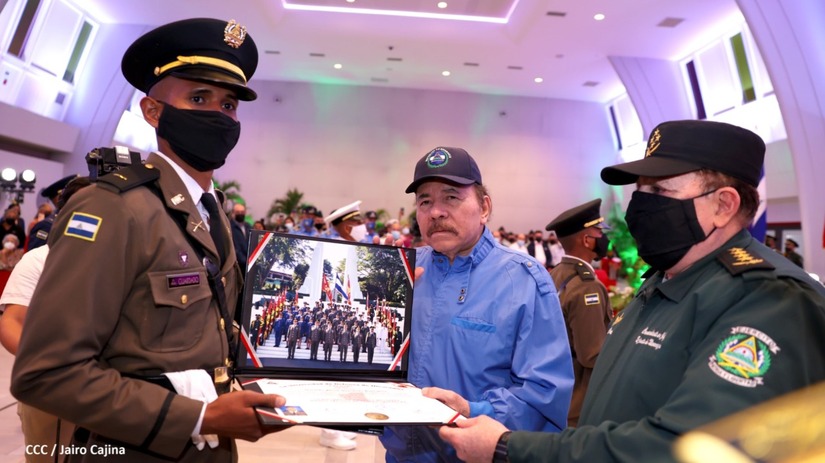 El Presidente de la República Comandante Daniel Ortega Saavedra y la Vicepresidenta Compañera Rosario Murillo, presiden junto al General de Ejército Julio César Avilés Castillo, la XXVII Promoción de Oficiales del Centro Superior de Estudios Militares General José Dolores Estrada Vado.