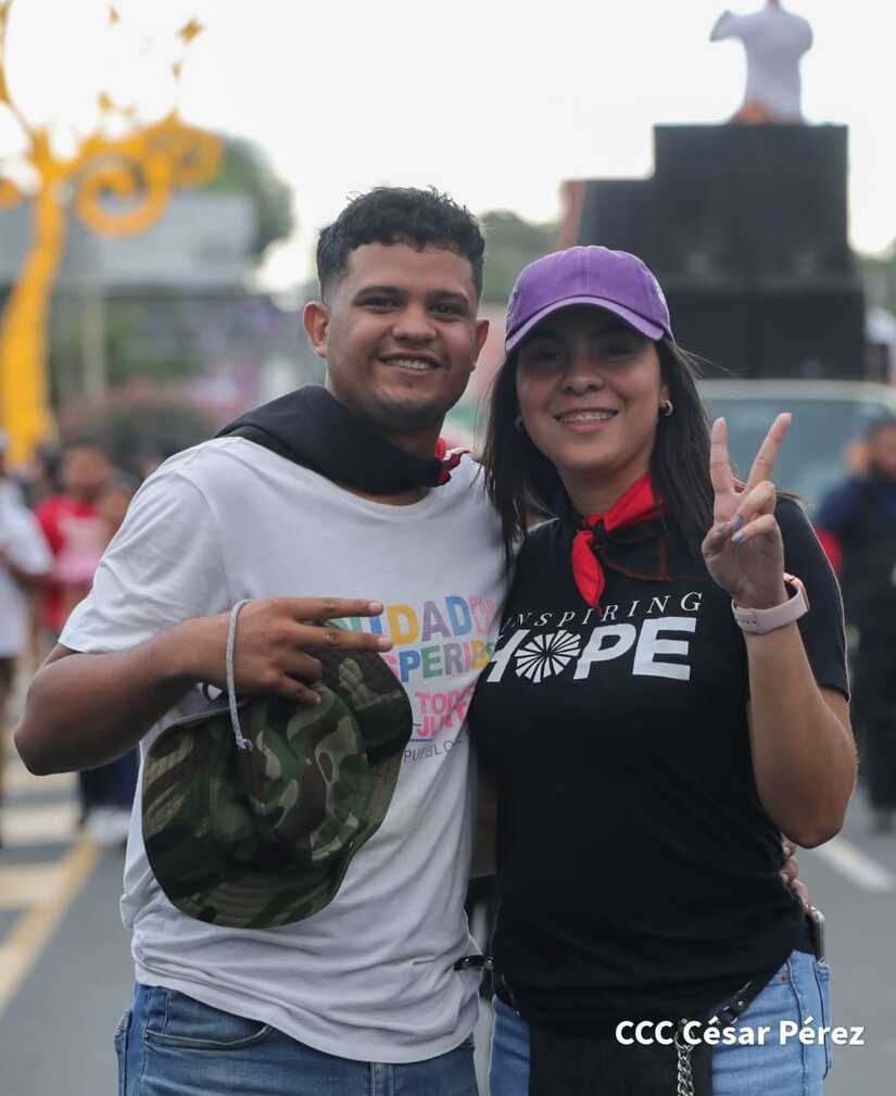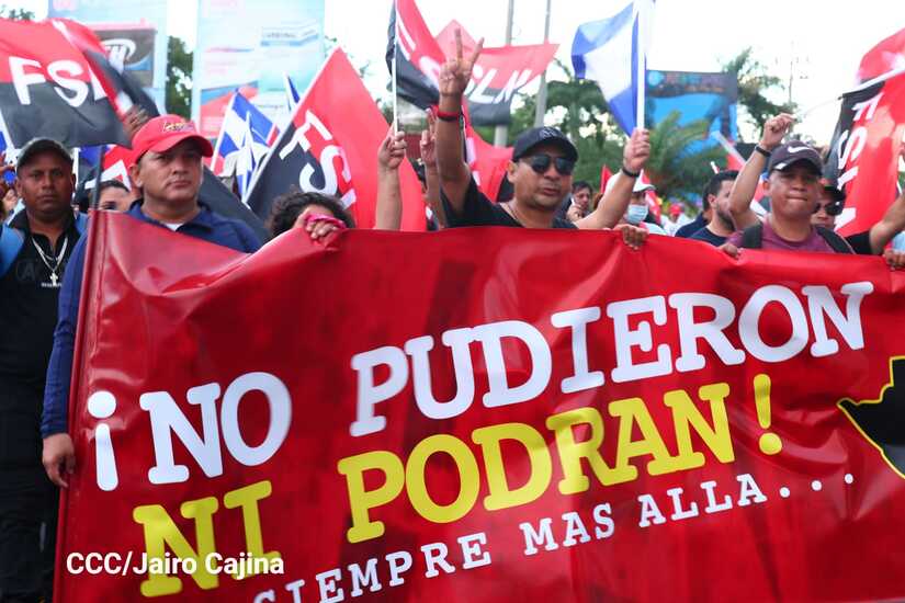 La militancia sandinista, siempre con la convicción, lealtad, heroísmo y lucha, con una multitudinaria caminata celebró este sábado estos nuevos tiempos de Victoria de la Paz y el Bien, con el lema "No pudieron, ni podrán".