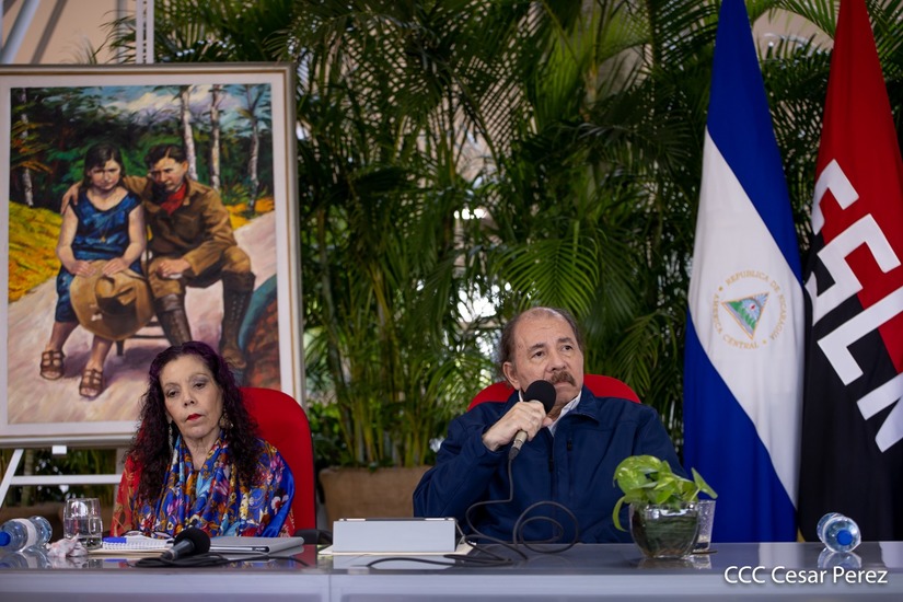 El Presidente de Nicaragua, Comandante Daniel Ortega, luego de saludar a los hermanos nicaragüenses, a las familias de esta tierra bendita este 19 de abril del año 2023 en el quinto aniversario de una nueva gran victoria histórica de Nicaragua en la lucha por la Paz.