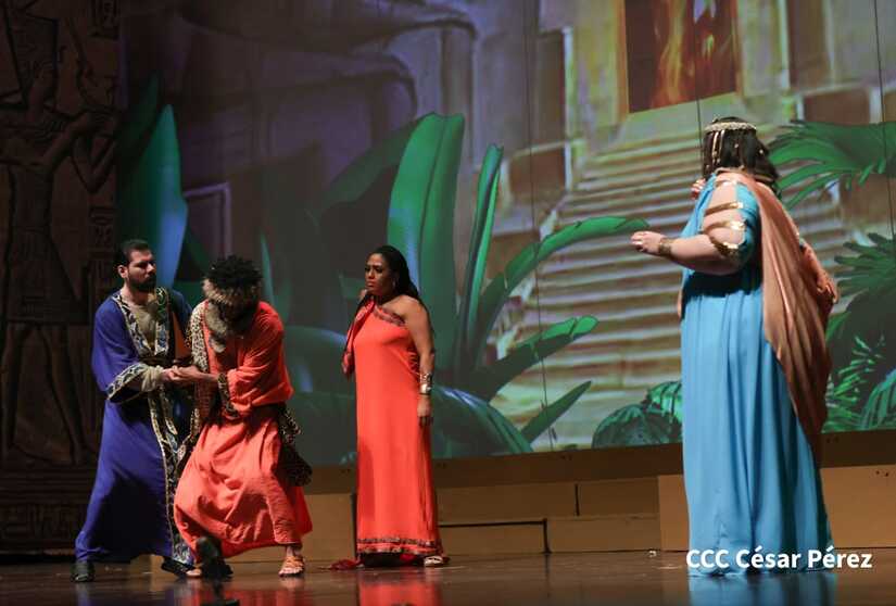 En la sala mayor del Teatro Nacional Rubén Darío (TNRD) se presentó la obra Aída, la que da por finalizada la Primera Temporada Lírica Incanto 2023, con la participación de más de 100 artistas nacionales.