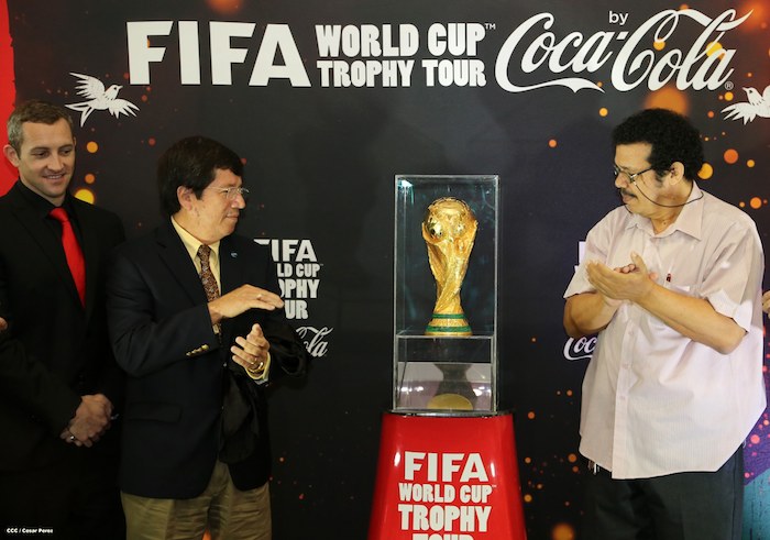 El Trofeo original de la Copa Mundial de la Federación Internacional de Fútbol Asociado (FIFA) arribó por primera vez a Nicaragua la mañana de este domingo, continuando con su tour por unos 89 países del mundo previo al gran campeonato que se realizará el próximo año en Brasil.