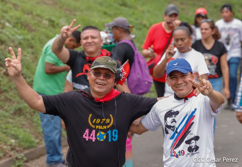 Militantes sandinistas participan en caminata en honor al Repliegue Táctico a Masaya