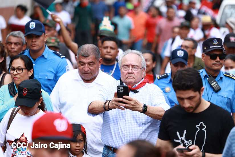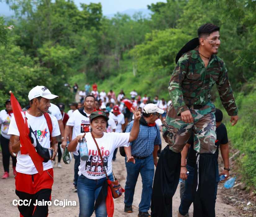 Niños, jóvenes, adultos, militantes históricos y adultos mayores participaron en la multitudinaria Caminata, en celebración del 44 aniversario de la toma del Fortín de Acosasco, en León.