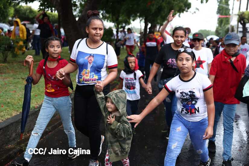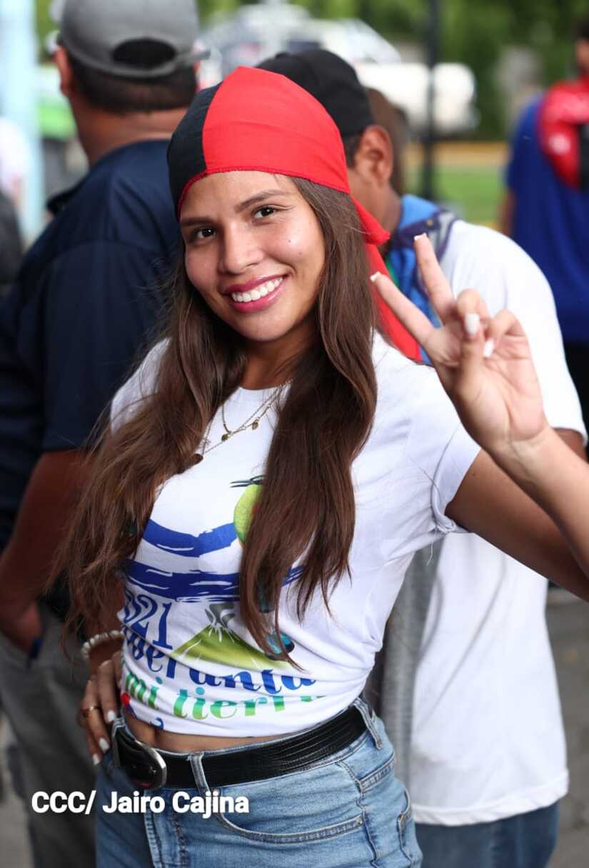 La multitudinaria caminata de este sábado 15 de julio, en saludo al 44719, inició en el sector del kilómetro 4 y medio de la Carretera Norte, frente al Centro Cultural y Politécnico José Coronel Urtecho; recorrió las calles, barrios, pistas y finalizó en la Casa Museo Comandante Julio Buitrago, con un concierto denominado “La Paz, Nuestra Victoria”.