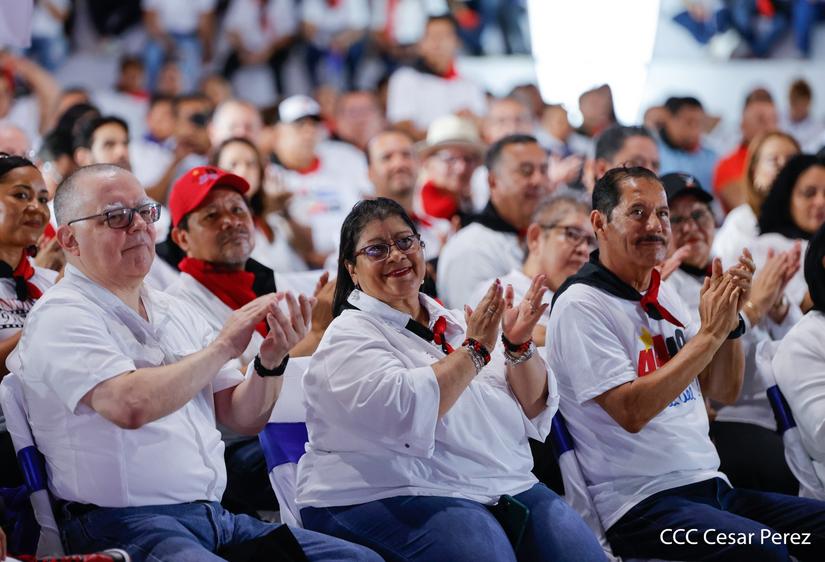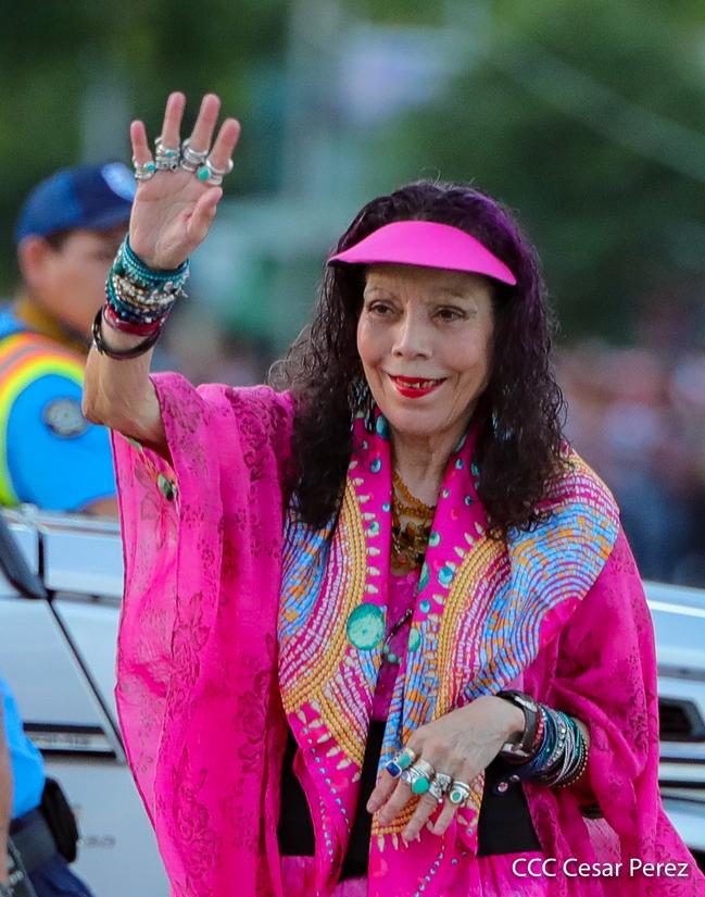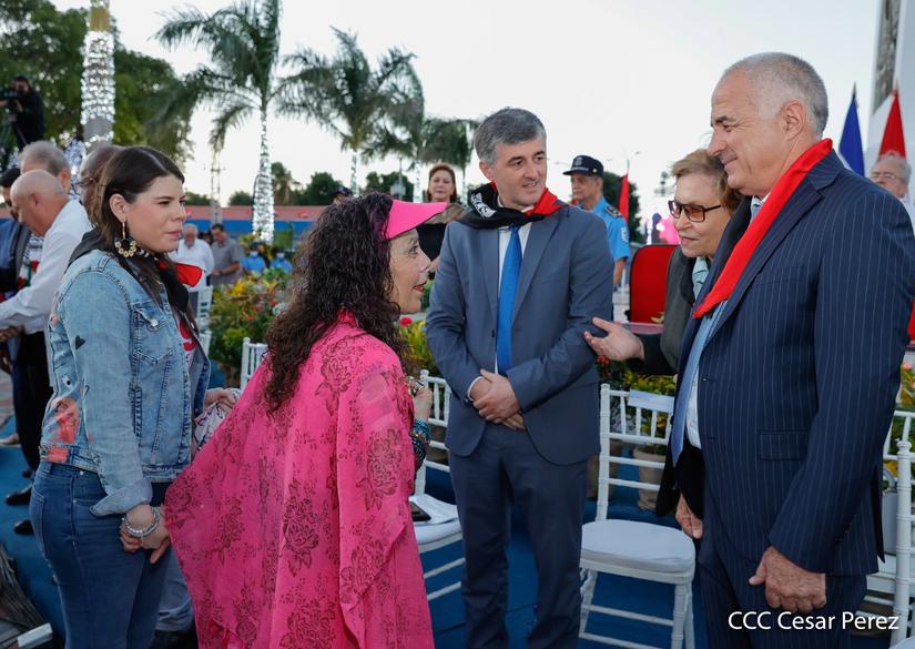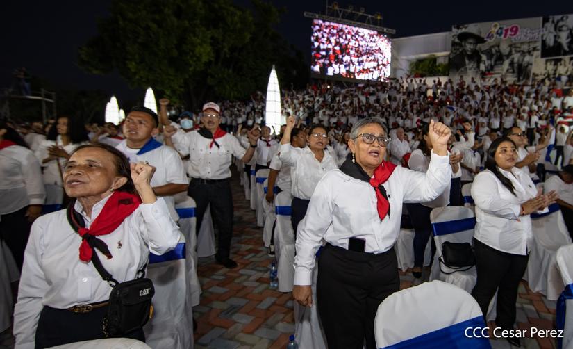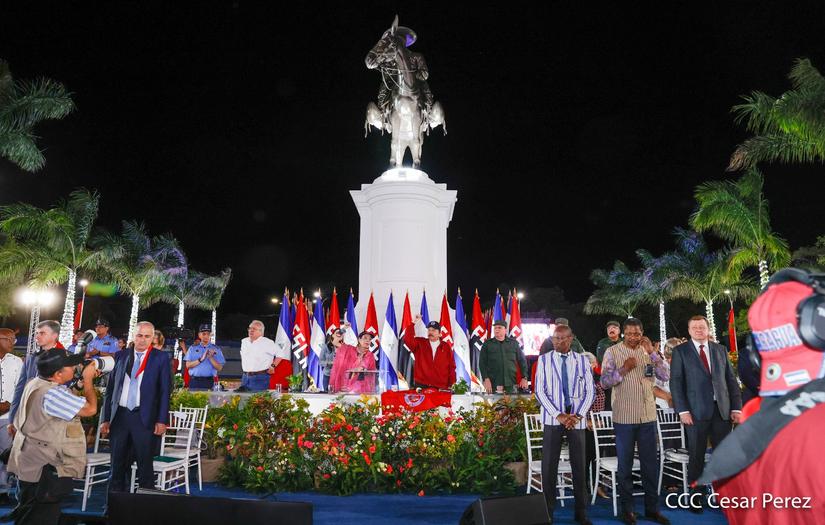 En la Plaza Parque de la Dignidad Nacional el Presidente Comandante Daniel Ortega Saavedra y la Vicepresidenta Compañera Rosario Murillo, presidieron el acto conmemorativo del 44 aniversario del triunfo de la Revolución Popular Sandinista.