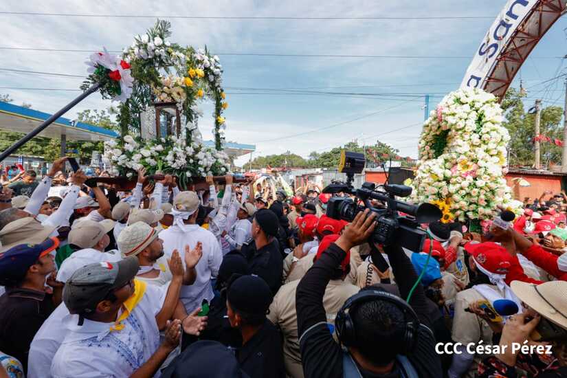 Con algarabía, bailes, filarmónicos y explosión de cohetes Santo Domingo de Guzmán, el patrono de los managuas, inició el recorrido la mañana de este 10 de agosto para regresar a la morada en Las Sierritas, tras 10 días en la capital.