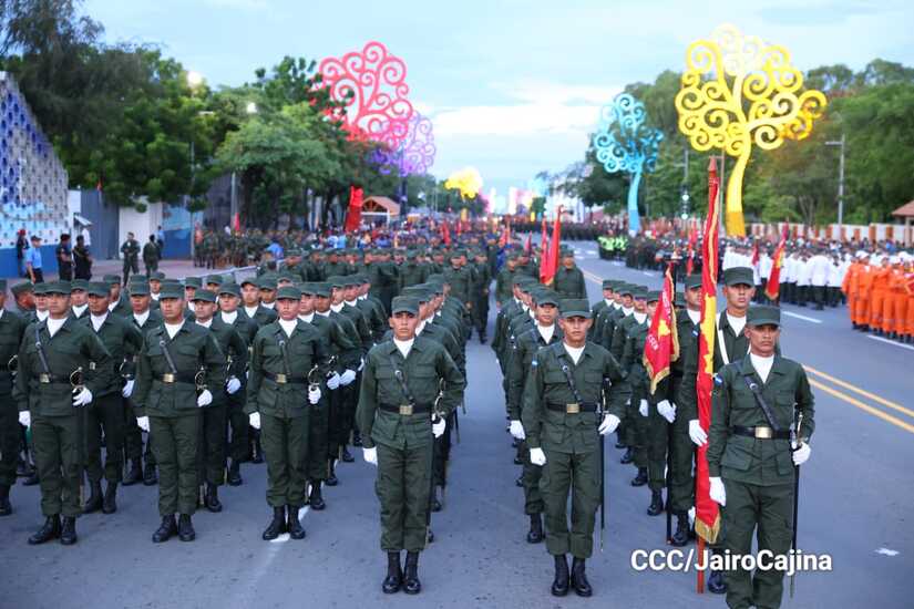 El Desfile Militar “Pueblo Ejército” se realiza desde la Avenida de Bolívar a Chávez, en donde las familias aprecian los diferentes componentes y bloques del Ejército de Nicaragua.