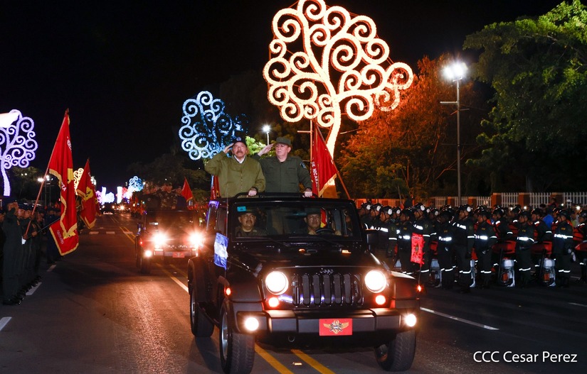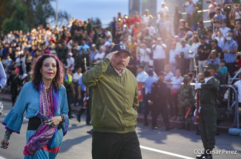 El Presidente de Nicaragua, Comandante Daniel Ortega y la Vicepresidenta Compañera Rosario Murillo participan en el Desfile Militar “Pueblo Ejército” en celebración del 44 aniversario de fundación del Ejército de Nicaragua.