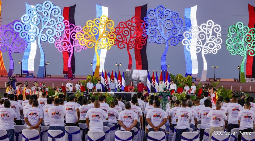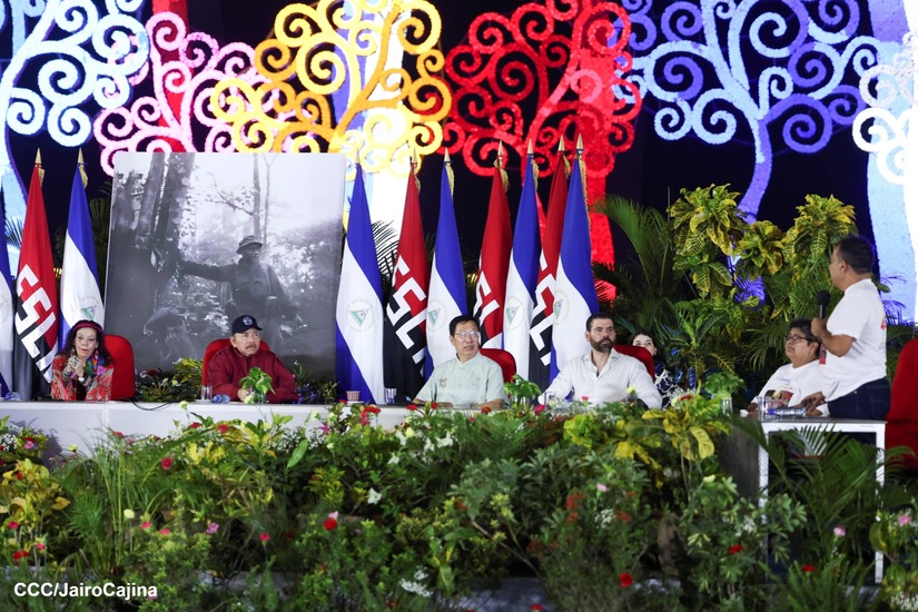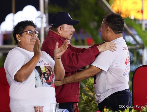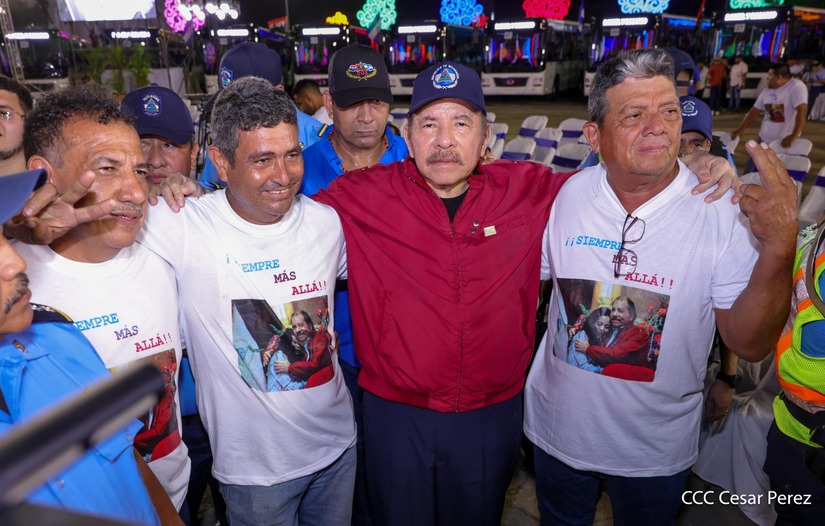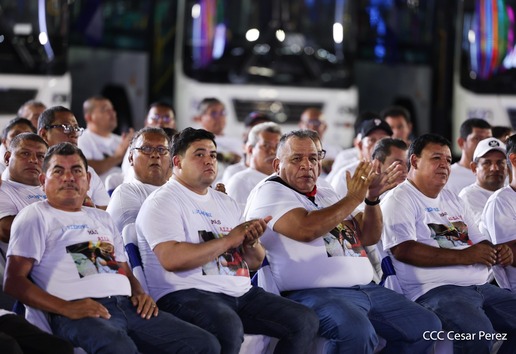 El Presidente de la República, Comandante Daniel Ortega y la Vicepresidenta Compañera Rosario Murillo, presiden el acto de la entrega de autobuses provenientes de la República Popular China a transportistas de las cooperativas de Managua, en conmemoración al Comandante Germán Pomares Ordóñez.