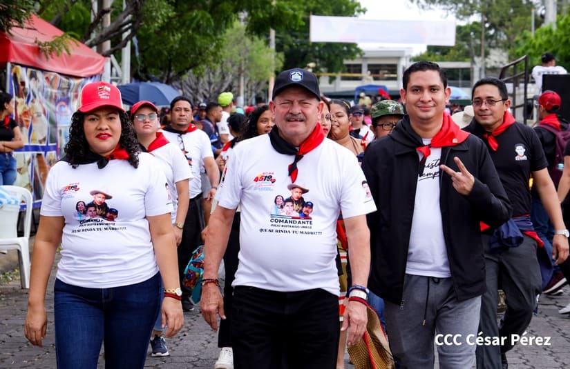 En Managua, las familias revolucionarias con su camiseta, pañoletas y banderas rojinegras, caminaron para celebrar y honrar a los Héroes y Mártires, quienes abonaron con su sangre la Nicaragua libre, que este próximo 19 de julio celebrará 45 años de Revolución.