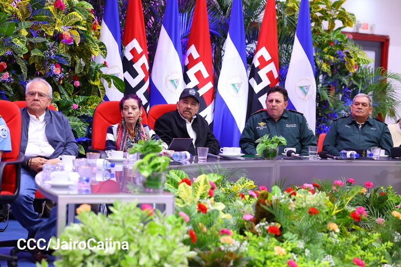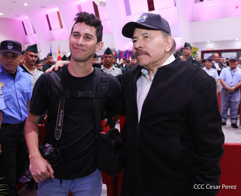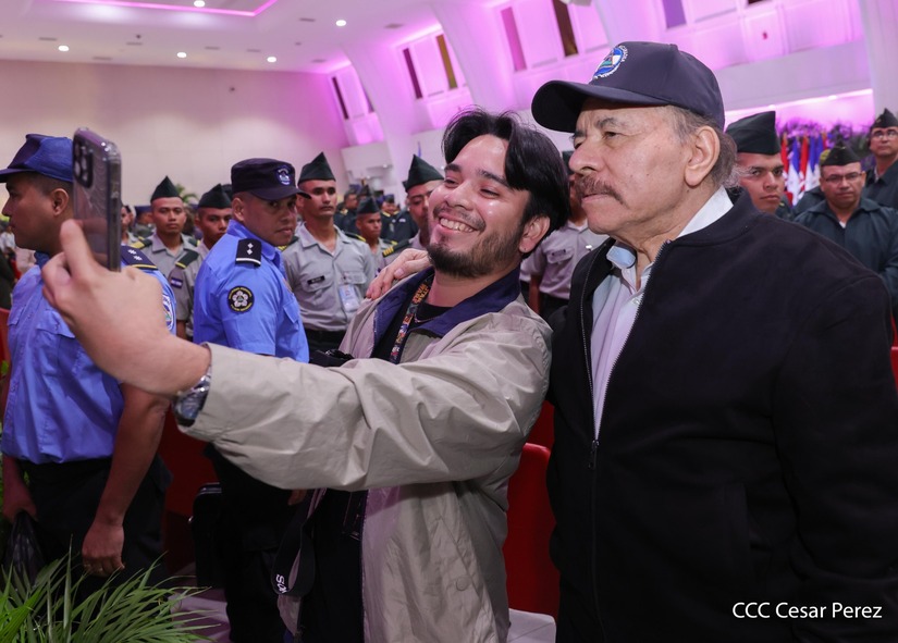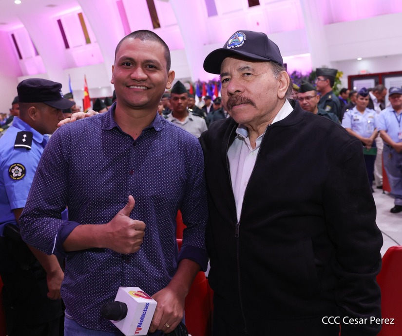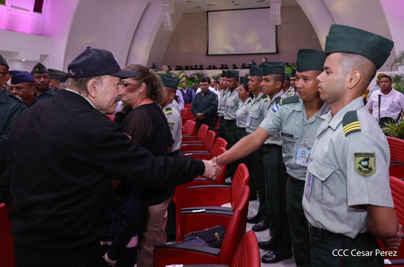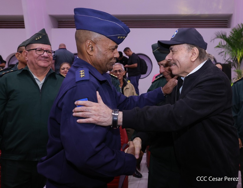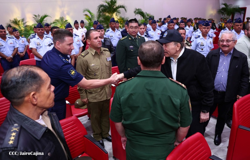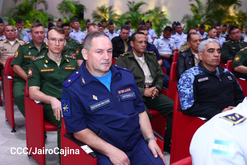 En el Centro de Convenciones “Olof Palme”, se realiza el acto de conmemoración del 45 Aniversario de Fundación de la Fuerza Aérea del Ejército de Nicaragua, presidido por el Presidente de la República y Jefe Supremo del Ejército de Nicaragua, Comandante Daniel Ortega Saavedra; la Vicepresidenta de la República, Compañera Rosario Murillo Zambrana; el Comandante en Jefe del Ejército de Nicaragua, General de Ejército Julio César Avilés Castillo.