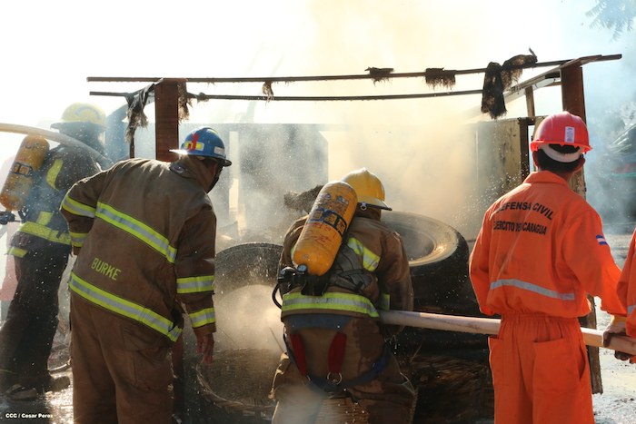 Comerciantes del mercado Roberto Huembes junto a autoridades pusieron en práctica un simulacro de terremoto e incendio en este centro de comercio popular.