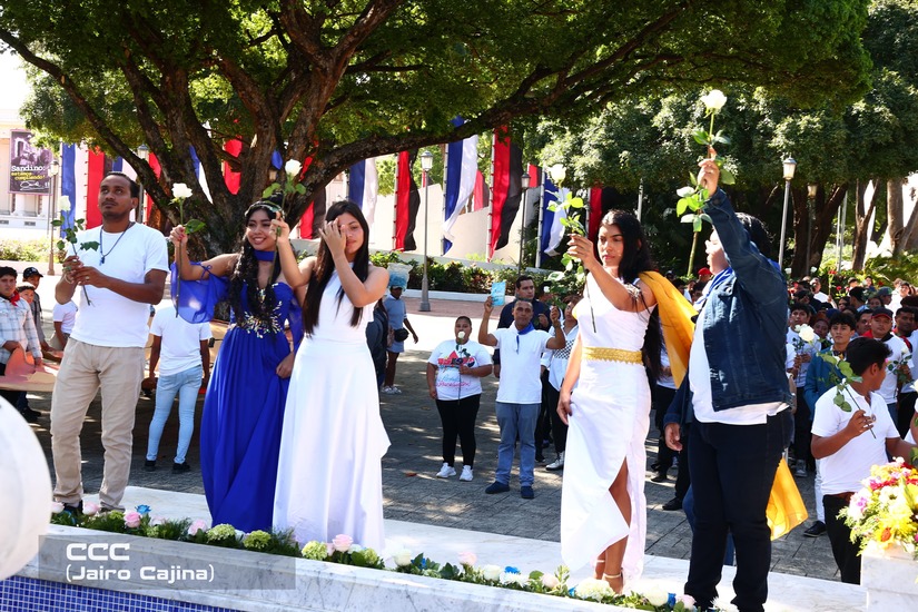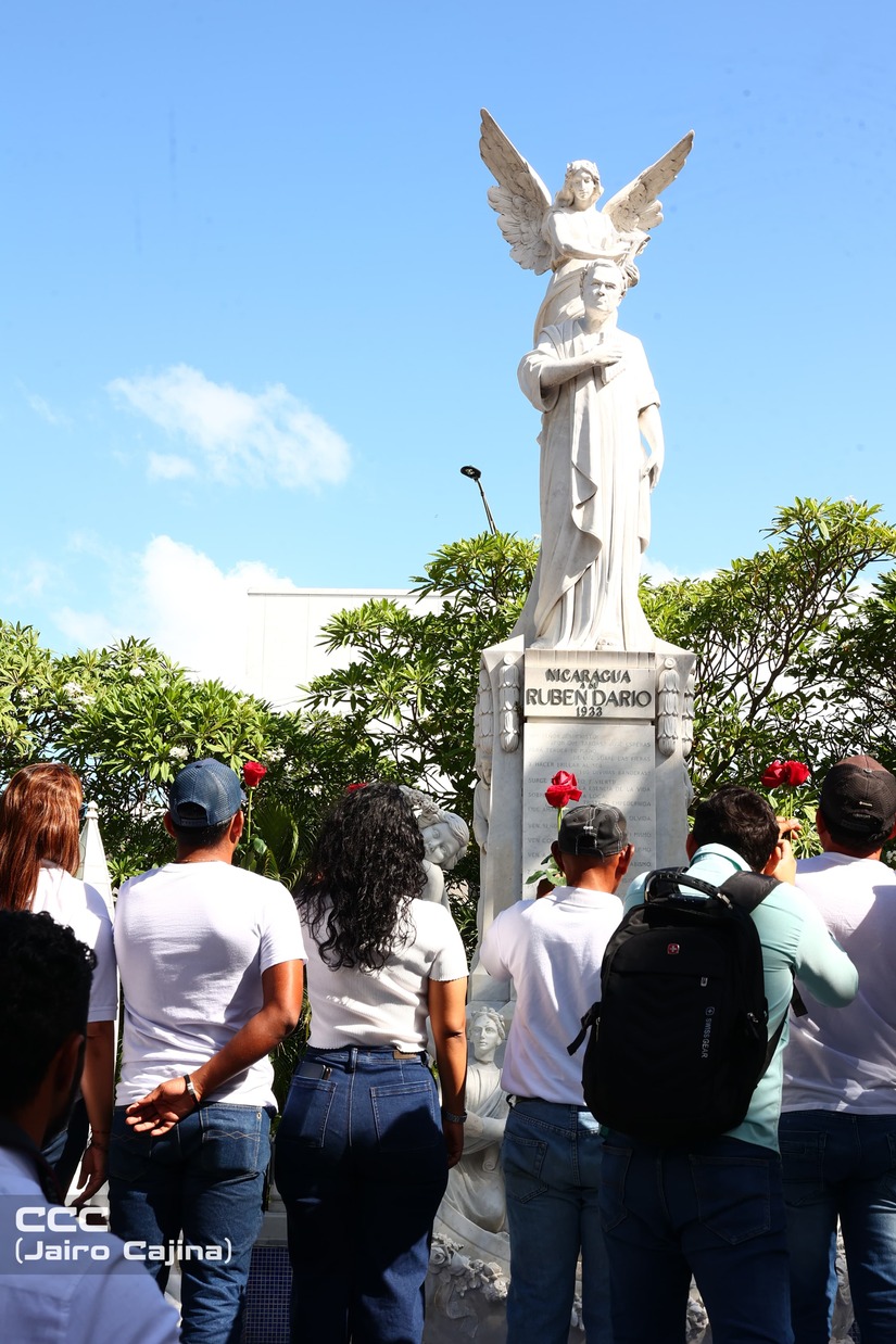 Con actividades llenas de poesía, presentación de mosaicos gigantes, bandas rítmicas, entrega de ofrendas, entre otras expresiones artísticas, fue realizado el homenaje para rendir honor a los 109 años del tránsito a la inmortalidad del Príncipe de las Letras Castellanas, Rubén Darío.