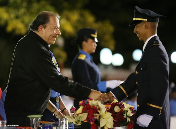 El Presidente de la República, comandante Daniel Ortega Saavedra, y la Coordinadora del Consejo de Comunicación y Ciudadanía, compañera Rosario Murillo presidieron este viernes la XVI Graduación de Cadetes de la Policía Nacional.