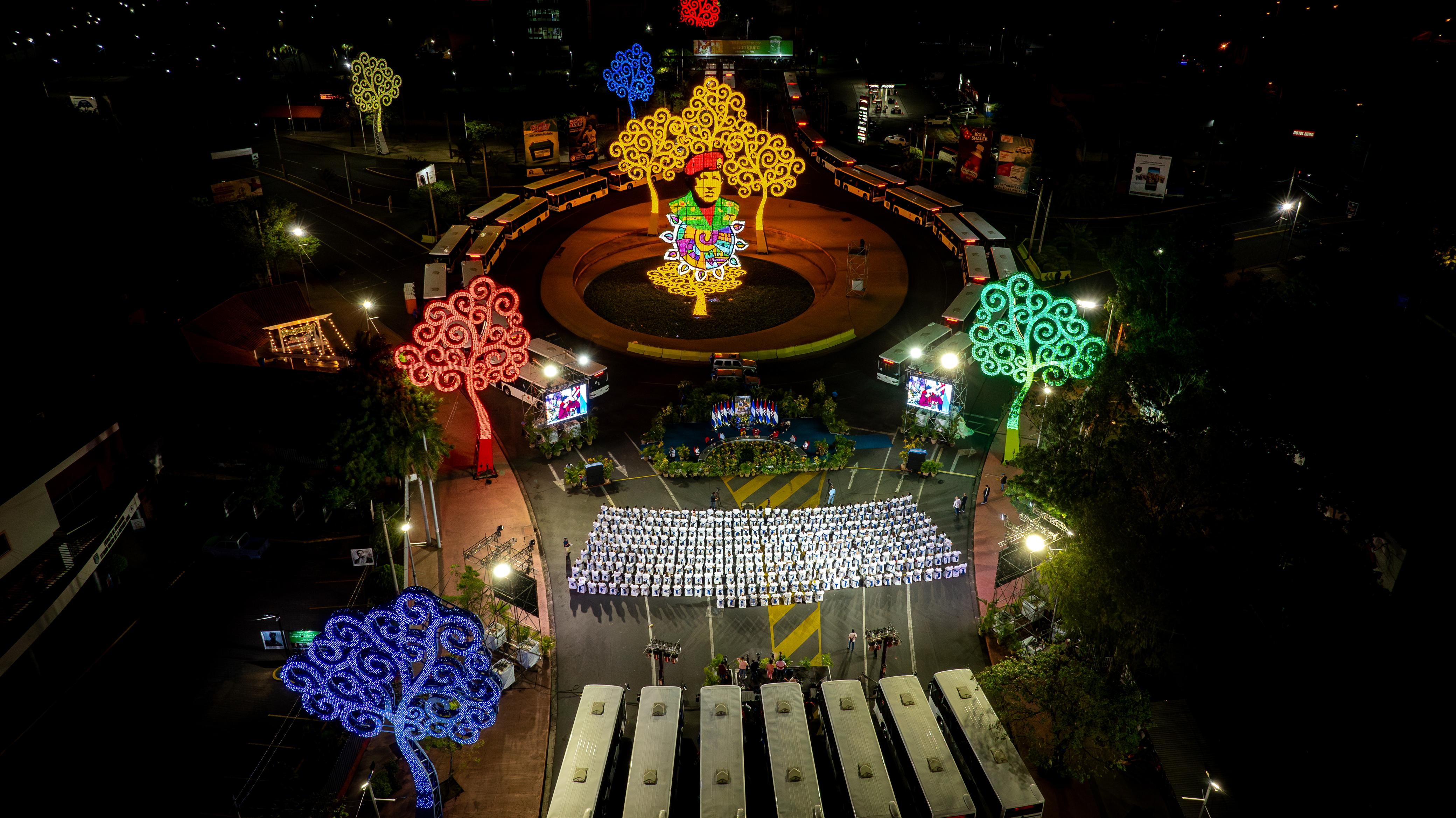 El acto de entrega es encabezado por el Copresidente Comandante Daniel Ortega Saavedra y la Copresidenta Compañera Rosario Murillo Zambrana desde la avenida de Bolívar a Chávez, en Managua.