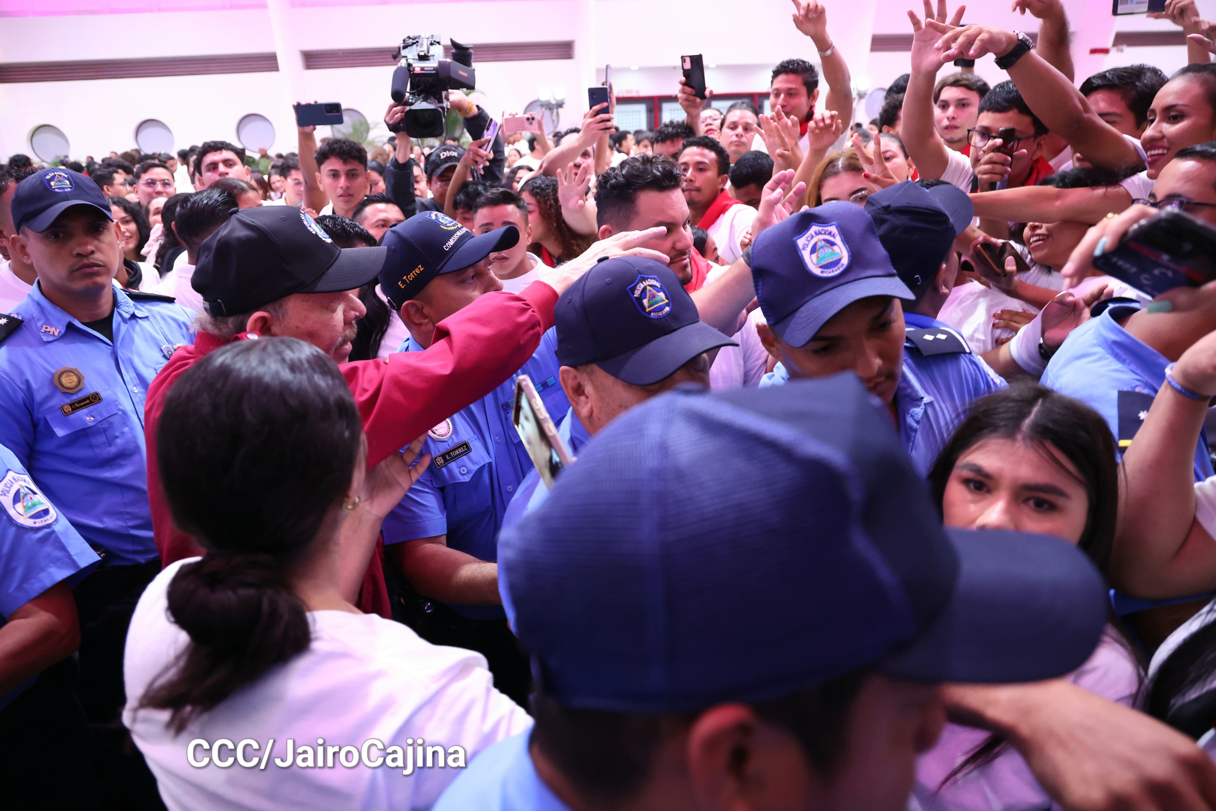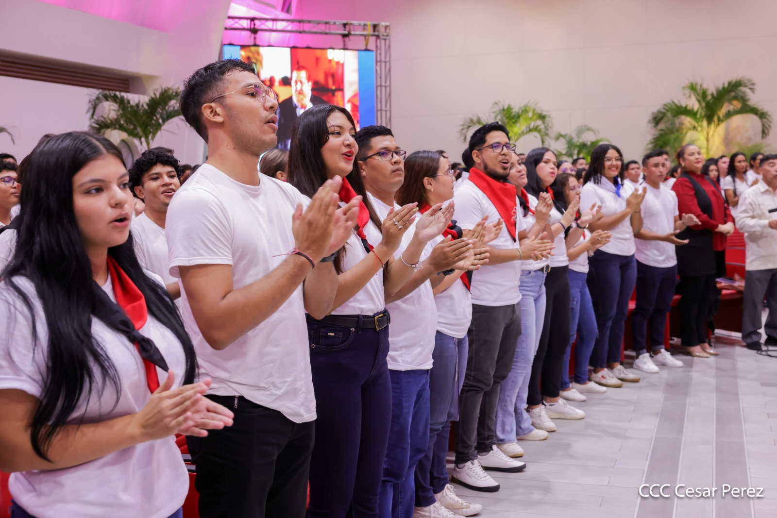 En el Centro de Convenciones Olof Palme, los Copresidentes de Nicaragua, Comandante Daniel Ortega y Compañera Rosario Murillo, encabezan esta tarde-noche el acto de celebración del 71 aniversario natal del Comandante Eterno Hugo Chávez Frías.