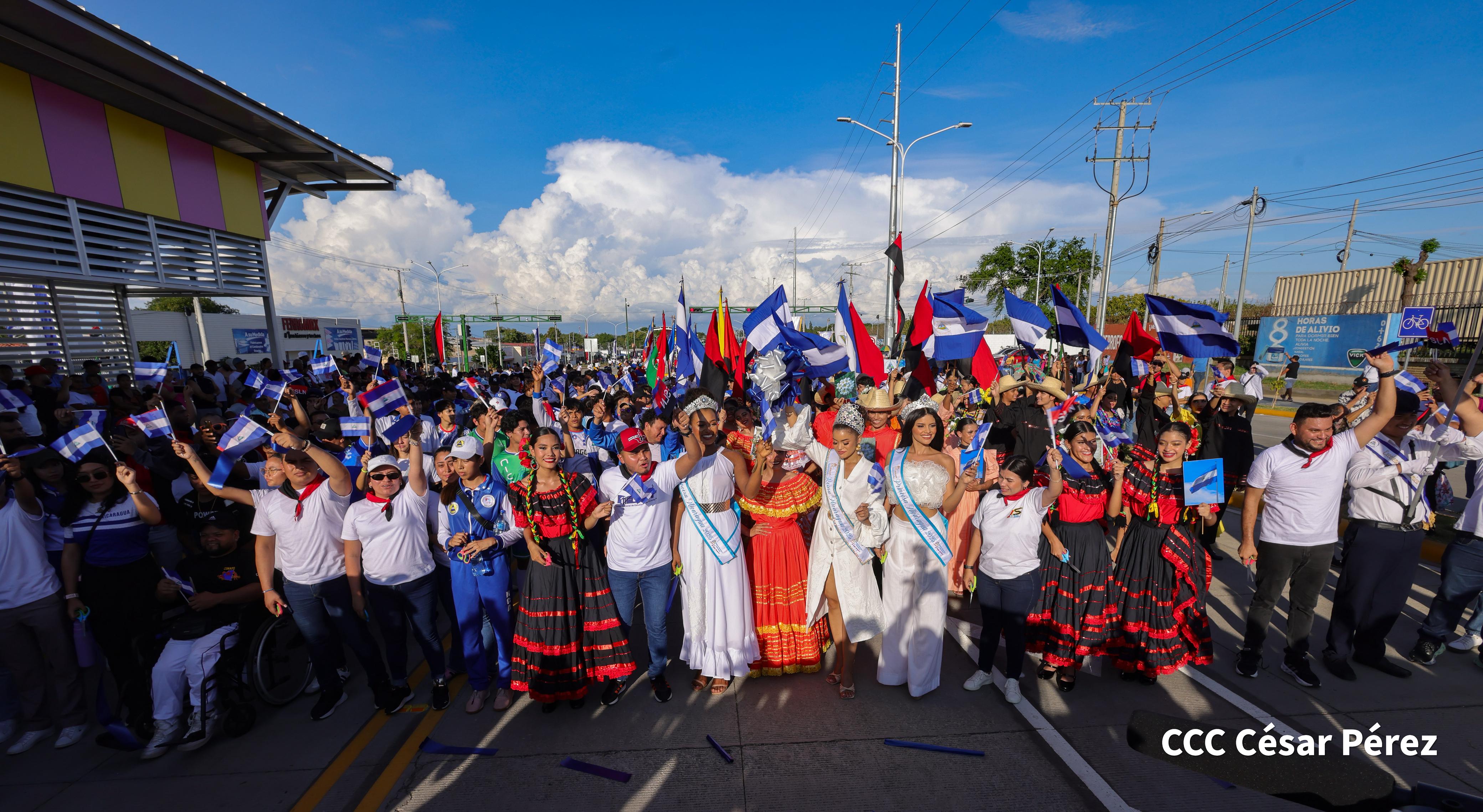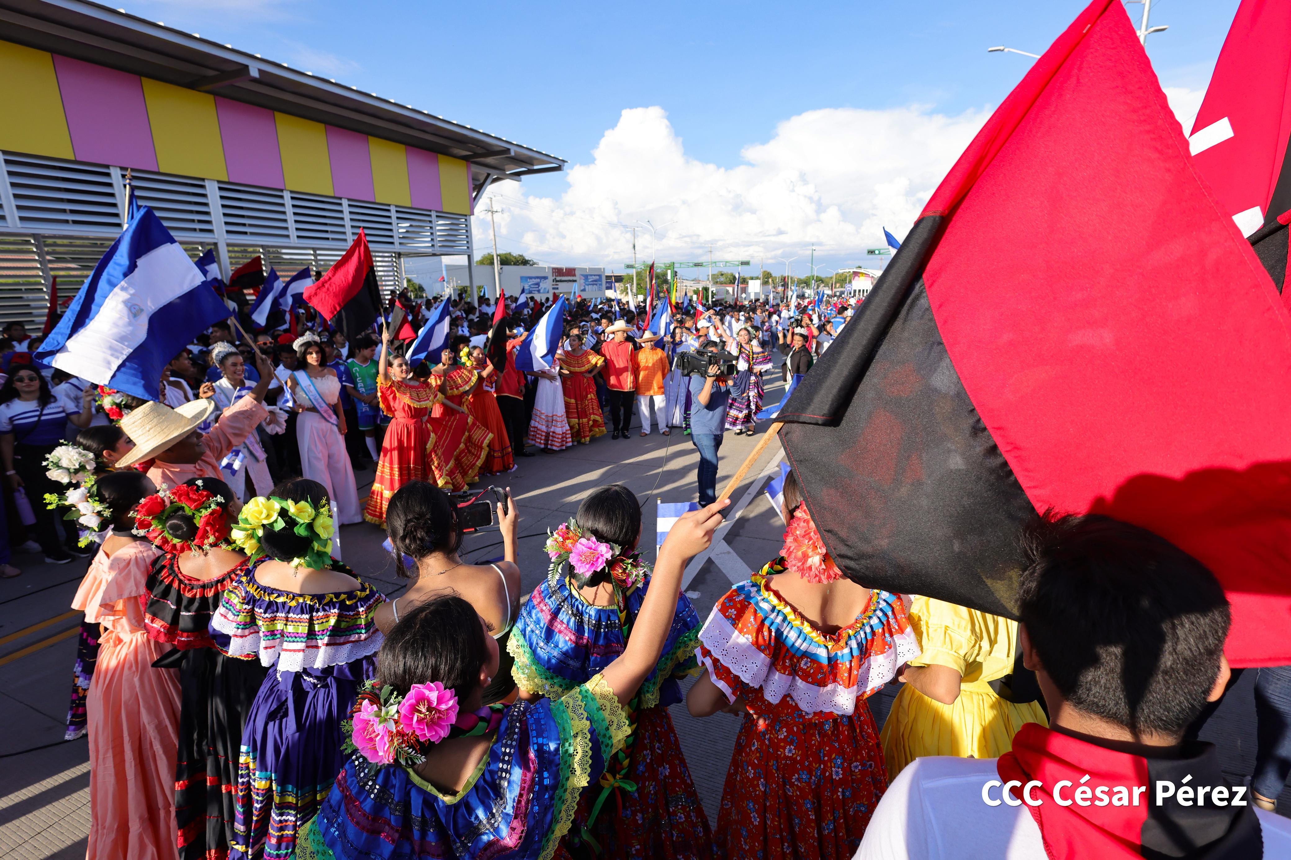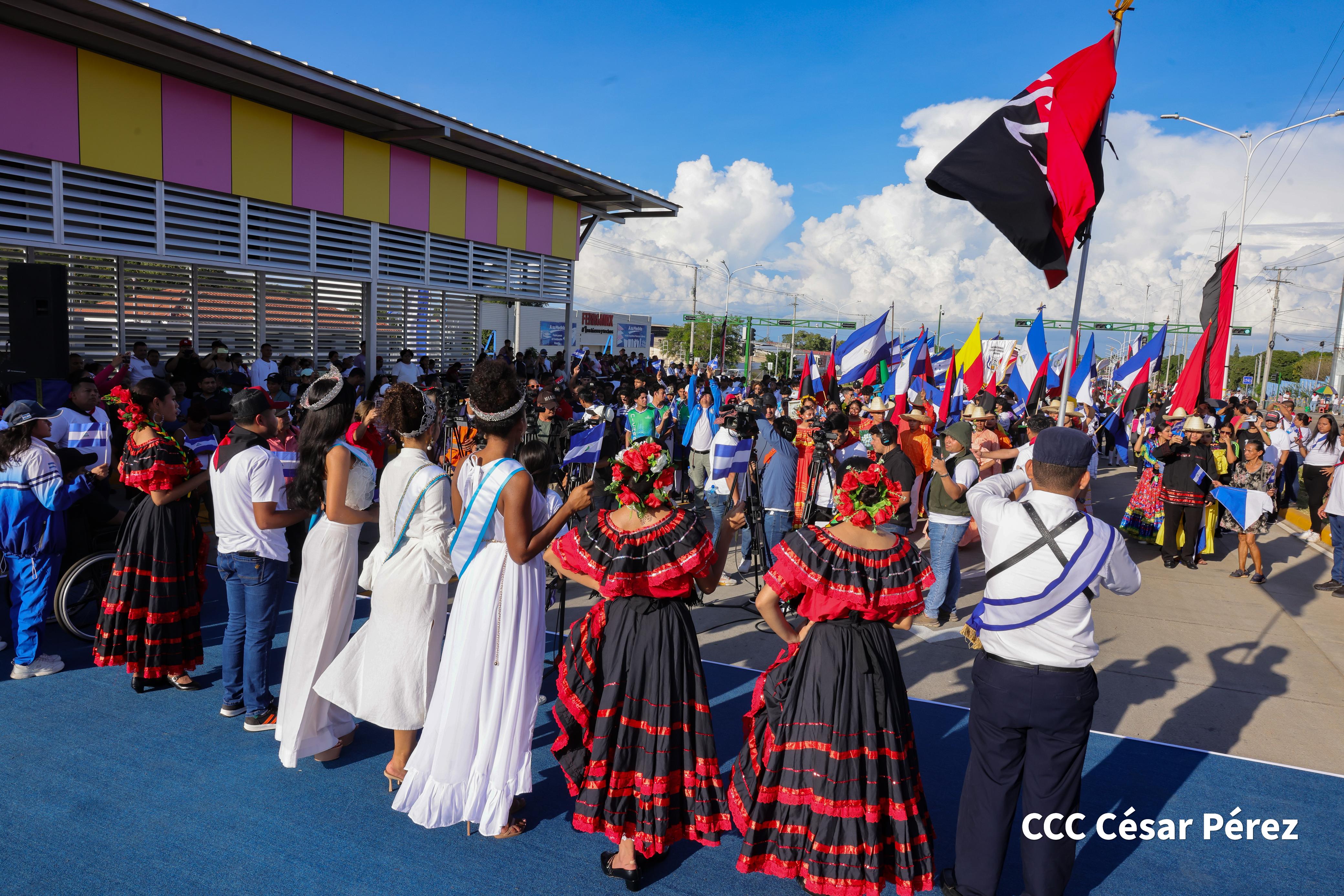 Los muchachos y muchachas, en un ambiente de alegría con representaciones de los distintos movimientos deportivos y culturales de la Juventud Sandinista 19 de Julio, bandas rítmicas de distintos centros educativos con sus coreografías artísticas, entregaron este primer tramo de esta mega obra.