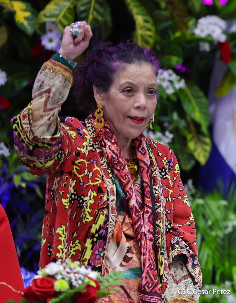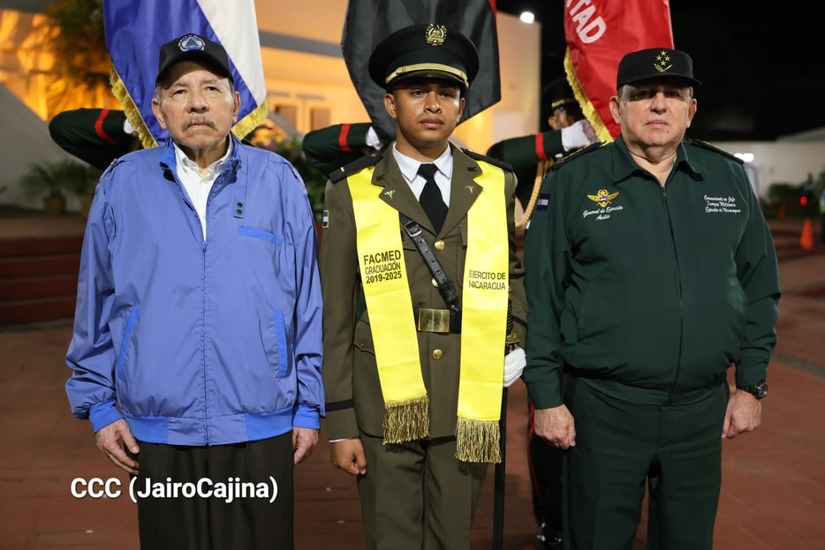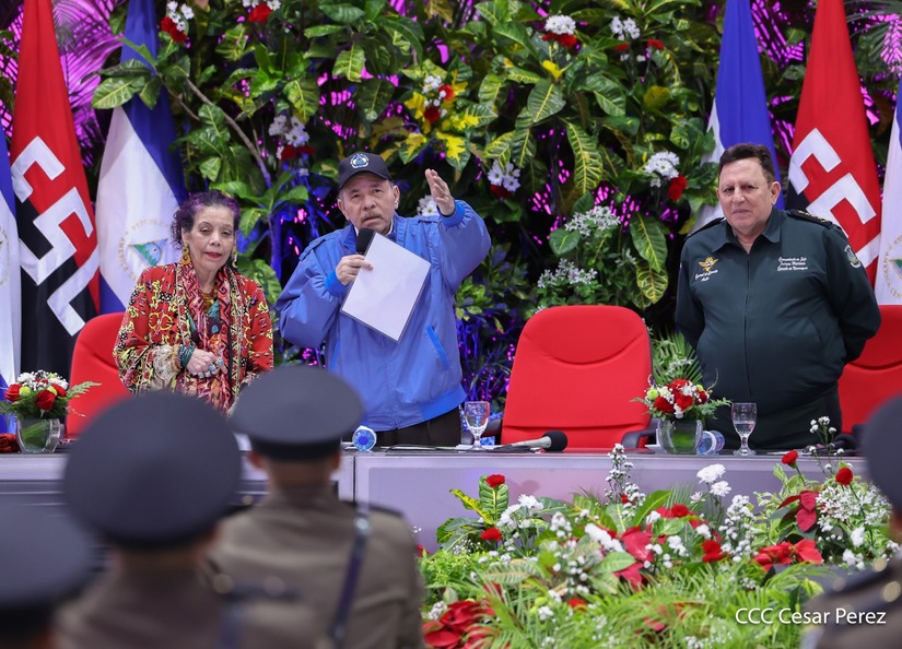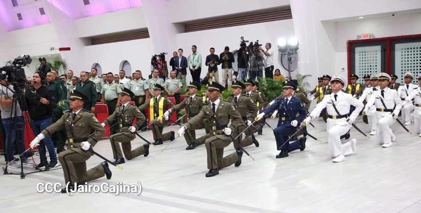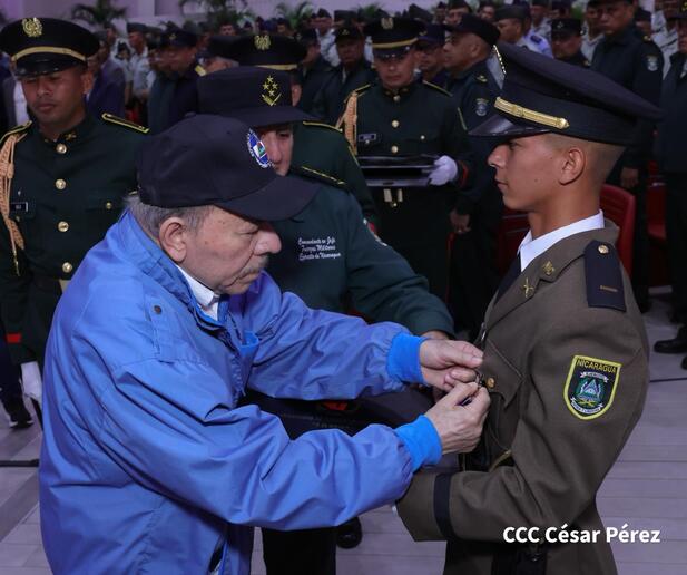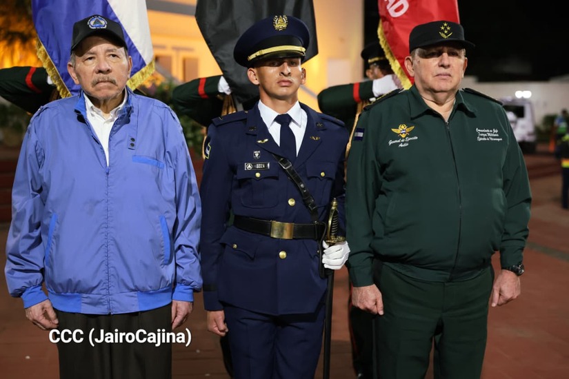 Los Copresidentes de la República, Comandante Daniel Ortega Saavedra y la Compañera Rosario Murillo, presiden junto al General de Ejército Julio César Avilés Castillo, la XXX Graduación de Cadetes del Centro Superior de Estudios Militares "General de División José Dolores Estrada Vado".