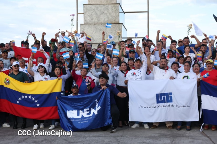 Jóvenes nicaragüenses rinden homenaje a Simón Bolívar con caminata y concierto en Managua
