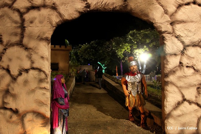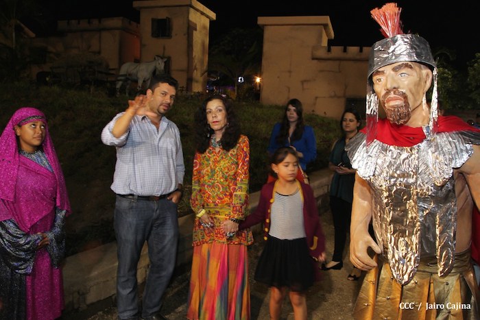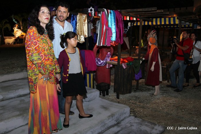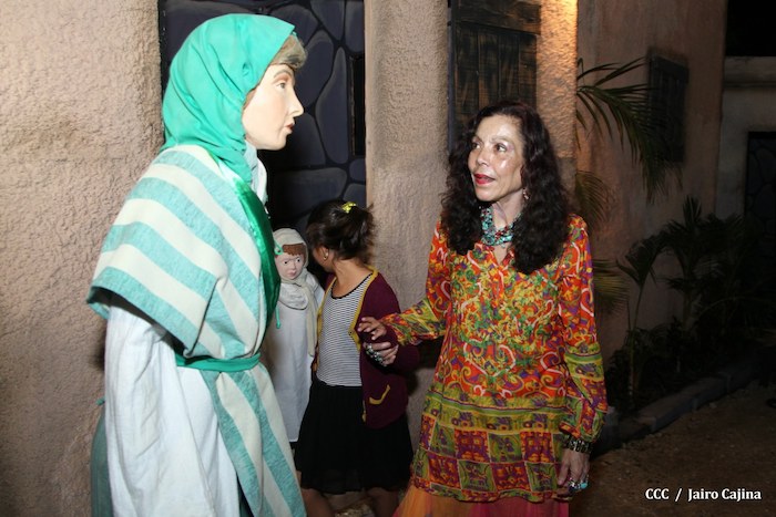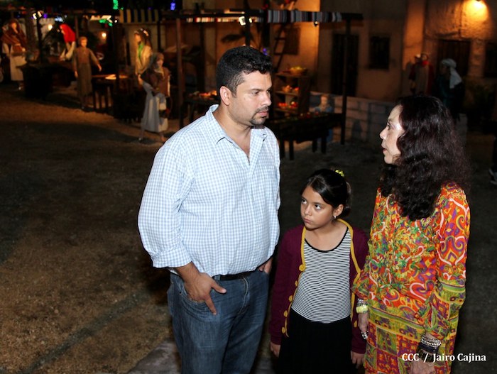 Acompañada por autoridades de la Alcaldía de Managua y familiares, la Compañera Rosario Murillo, Coordinadora del Consejo de Comunicación y Ciudadanía, realizó la noche de este miércoles un recorrido para supervisar los avances en la instalación del Belén, el cual se inaugurará en los próximos días en el Parque Luis Alfonso Velásquez Flores de la capital.