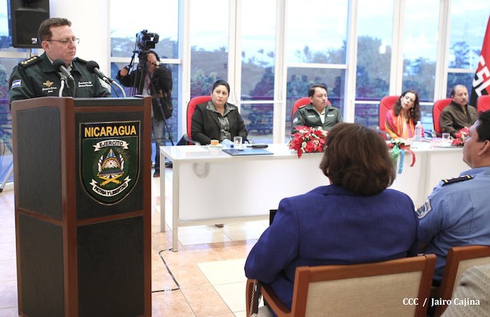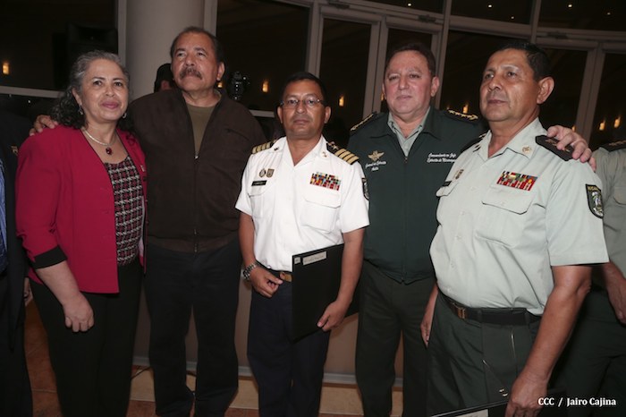 El Presidente de la República, comandante Daniel Ortega Saavedra, presidió este jueves la clausura del Noveno Curso Anual en Defensa y Seguridad del Ejército de Nicaragua, dedicado a la memoria del líder sudafricano Nelson Mandela, y del líder bolivariano, comandante Hugo Chávez Frías.