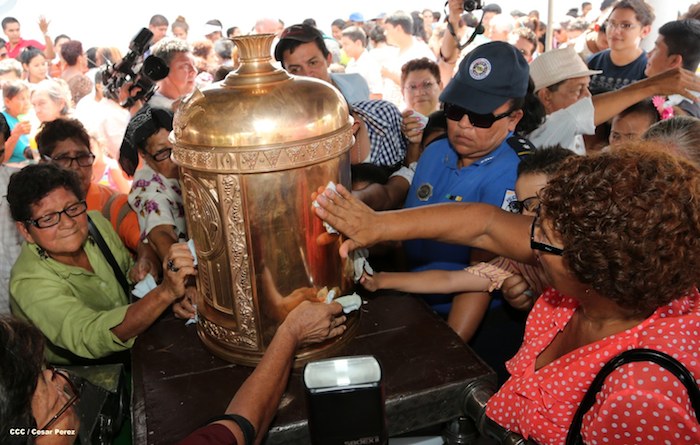 El fervor mariano y la fe en la Virgen María invadieron al pueblo católico nicaragüense, que una vez más se desbordó en la Basílica Menor de El Viejo para festejar junto al clero los 451 años de la llegada de la Virgen del Trono a Nicaragua con la Lavada de la Plata.