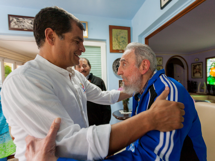 El líder histórico de la Revolución cubana, Fidel Castro Ruz, recibió en la tarde de hoy al Comandante Daniel Ortega y la Compañera Rosario Murillo, quienes participaron en la II Cumbre de la CELAC en La Habana, Cuba. En el encuentro también estuvieron presentes los presidentes Evo Morales y Rafael Correa, presidentes del Estado Plurinacional de Bolivia y la República del Ecuador, respectivamente.