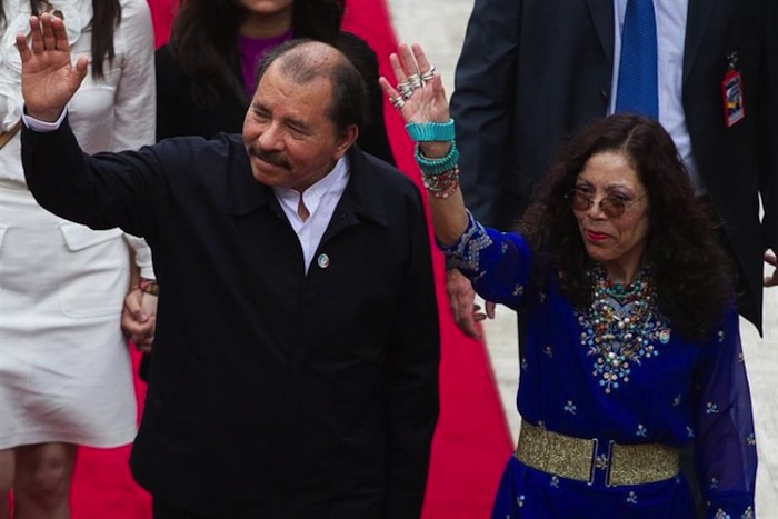 Presidente Daniel Ortega y Compañera Rosario Murillo en juramentación del presidente de Venezuela, Nicolás Maduro