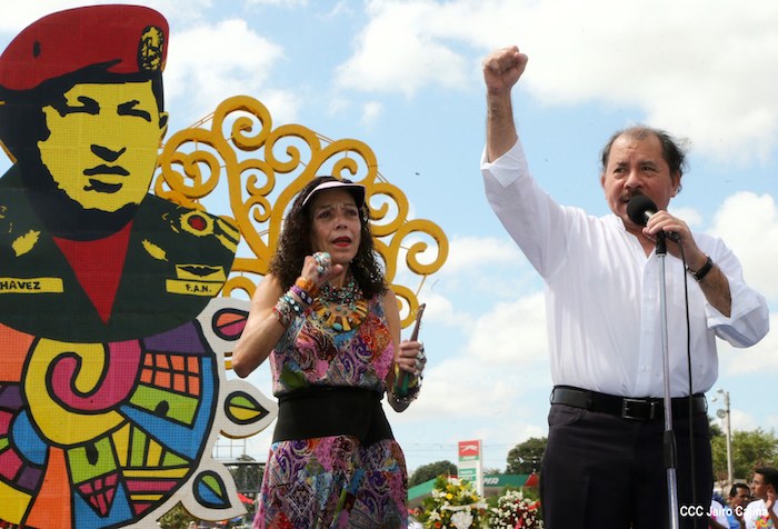 En la rotonda Hugo Chávez, de Managua, el presidente Daniel Ortega y la compañera Rosario Murillo depositaron una ofrenda floral y rindieron homenaje al Comandante Eterno de Nuestramérica.