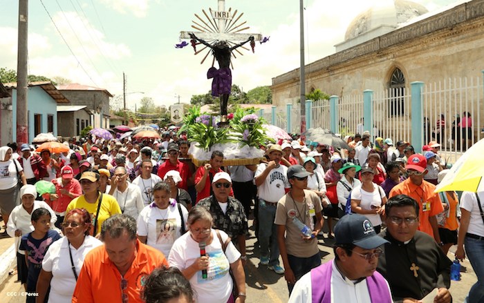 Cardenal Leopoldo Brenes participa en Viacrucis en La Conquista, Carazo, con la imagen del Señor de Esquipulas y Cristo del Rosario, que culminó con una Santa Misa en la Iglesia Jesús del Rescate.
