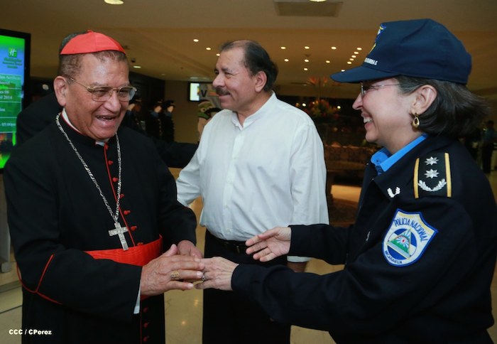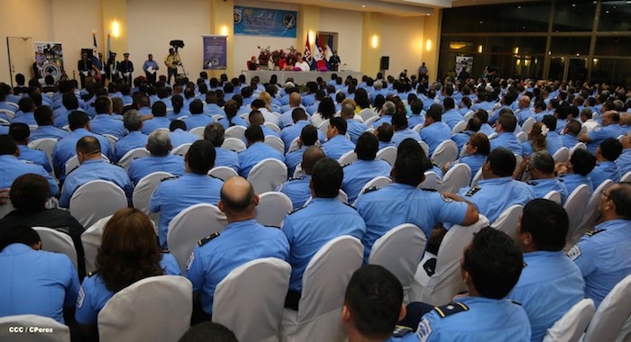 El Presidente de la República, comandante Daniel Ortega Saavedra, y la Coordinadora del Consejo de Comunicación y Ciudadanía, compañera Rosario Murillo, presidieron este martes la XXIII Reunión de Mandos de la Policía Nacional, dedicada al General de Hombres y Mujeres Libres, Augusto C. Sandino.