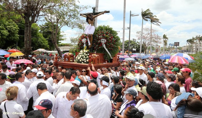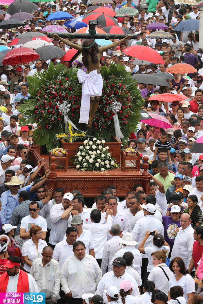 Cardenal Lepoldo Brenes acompaña la Imagen de Cristo en el Viacrucis Penitencial en Managua.