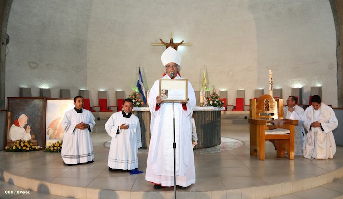 Su Eminencia Reverendísima Cardenal Leopoldo Brenes al iniciar la Santa Misa en la Catedral Metropolitana de Managua, expresó que Nicaragua se llena de regocijo con la canonización de los nuevos santos Juan Pablo II y Juan XXIII, a quienes considera “pilares fundamentales” de la Iglesia Católica.