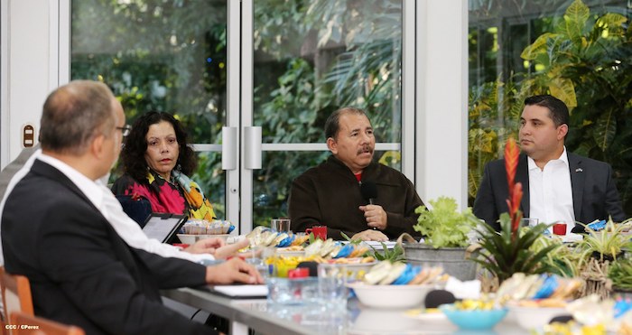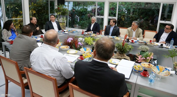 El Presidente de la República, Comandante Daniel Ortega Saavedra, y la Coordinadora del Consejo de Comunicación y Ciudadanía, Compañera Rosario Murillo, se reunieron este miércoles con la Junta Directiva de la Cámara de Comercio Americana de Nicaragua (Amcham).