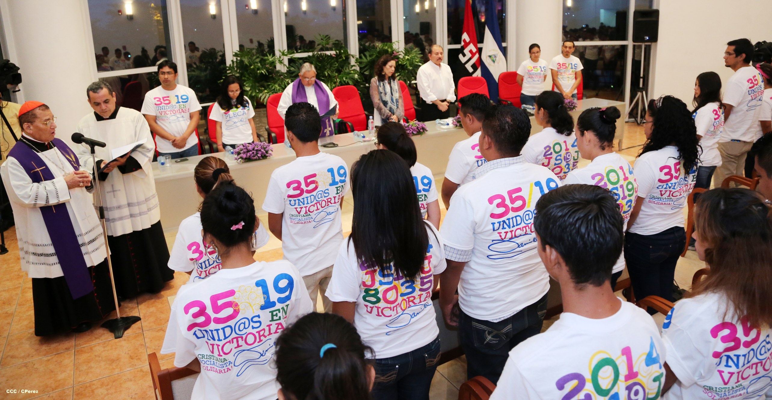 El Presidente de la República, Comandante Daniel Ortega Saavedra, y la Coordinadora del Consejo de Comunicación y Ciudadanía, Compañera Rosario Murillo, participaron del acto-homenaje celebrado en Casa de los Pueblos a las víctimas de la cobarde masacre contra las familias que regresaban de la Fiesta Nacional del 19 de Julio, ratificando el compromiso con el pueblo nicaragüense con las fuerzas de la Paz y del Amor.