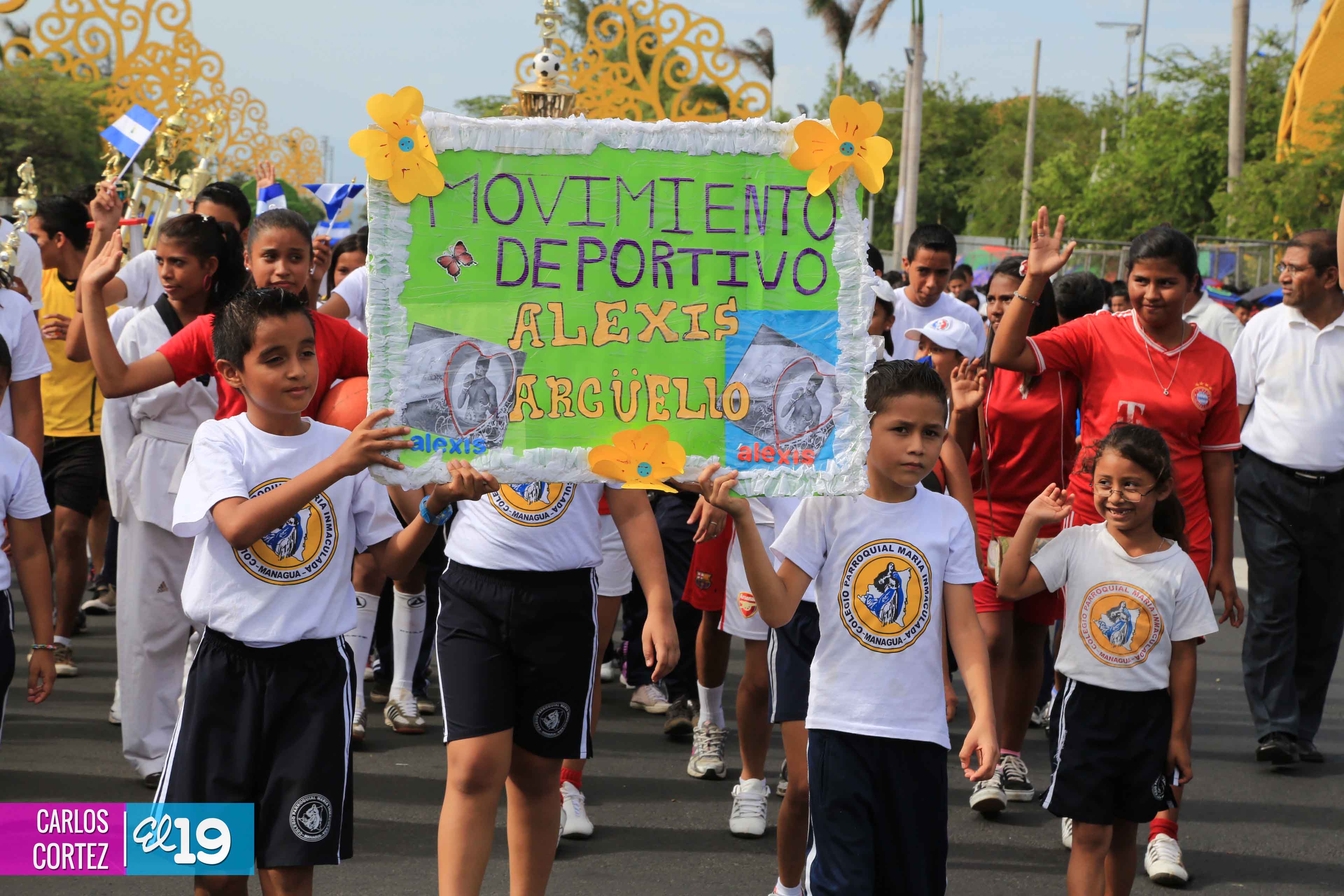 Miles de estudiantes de los distritos III y IV de Managua, protagonizaron el Desfile Patrio en saludo a la Cruzada Nacional de Alfabetización (CNA) que cumplió su 34 aniversario.