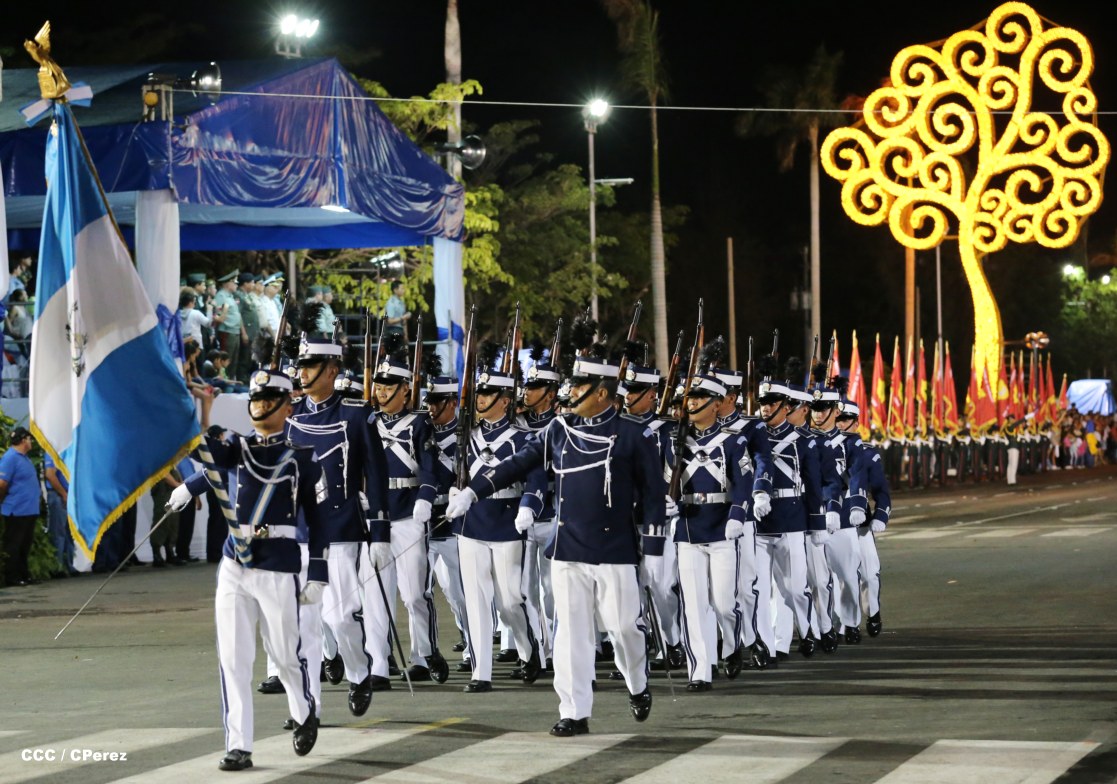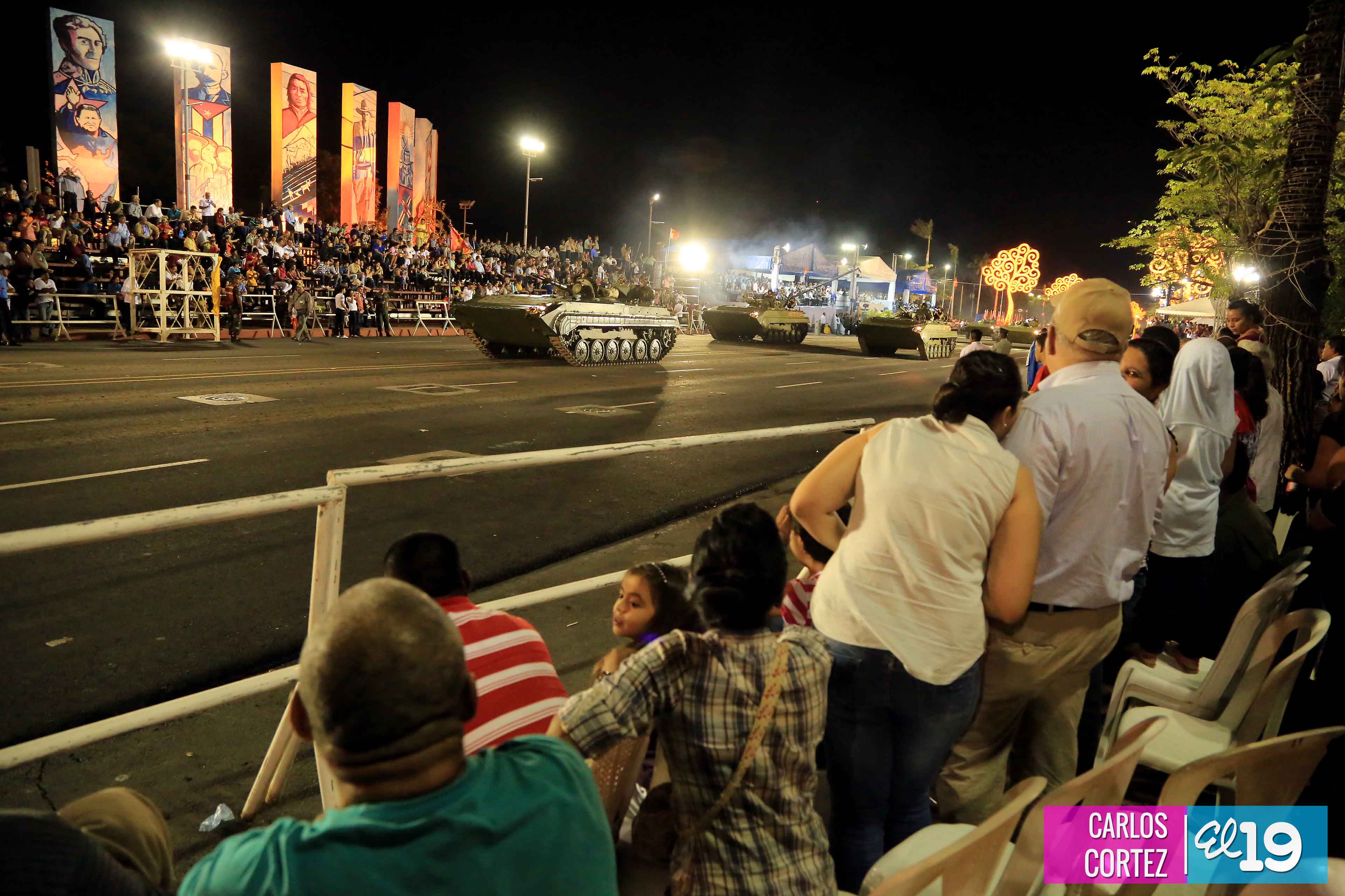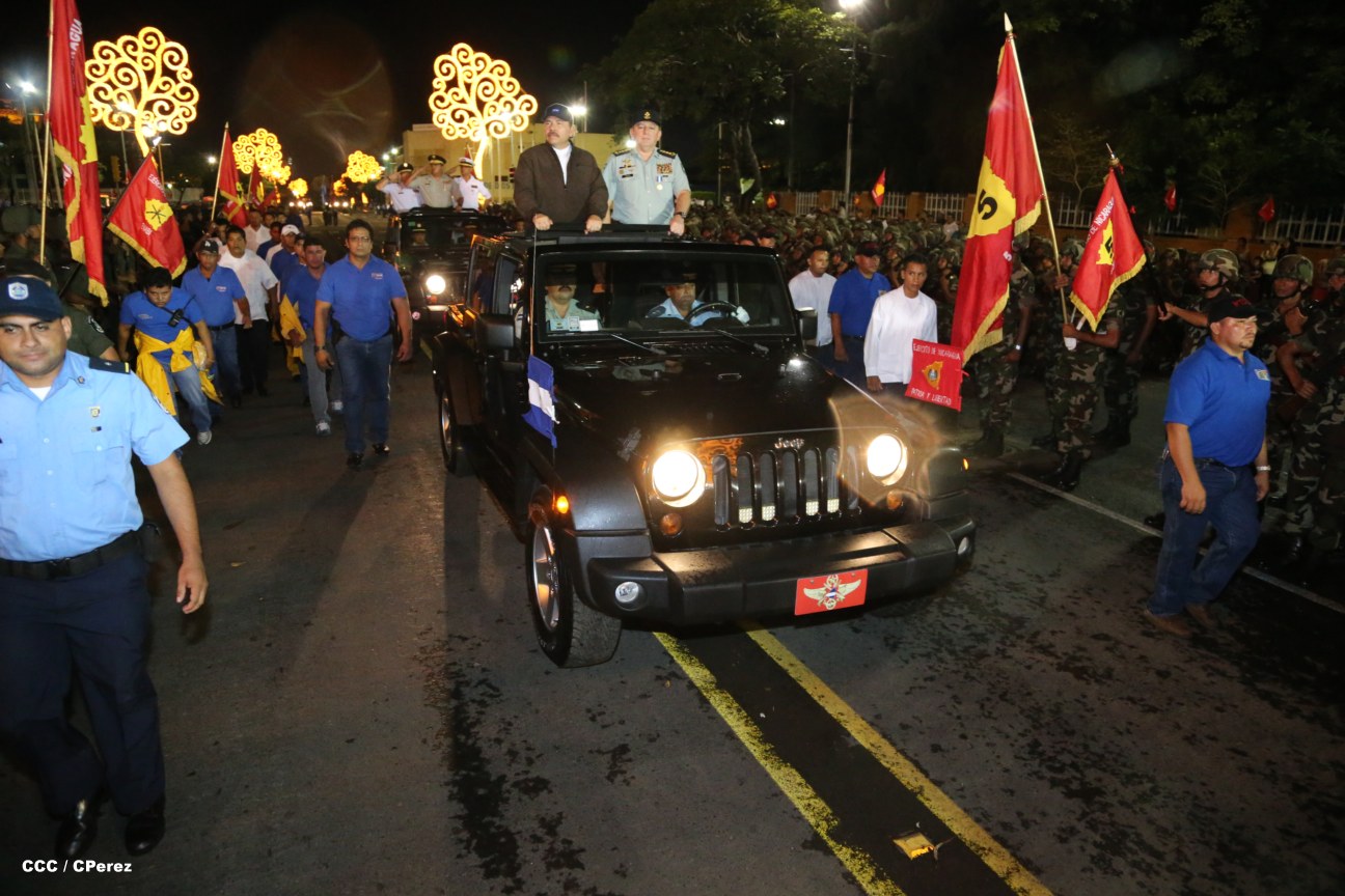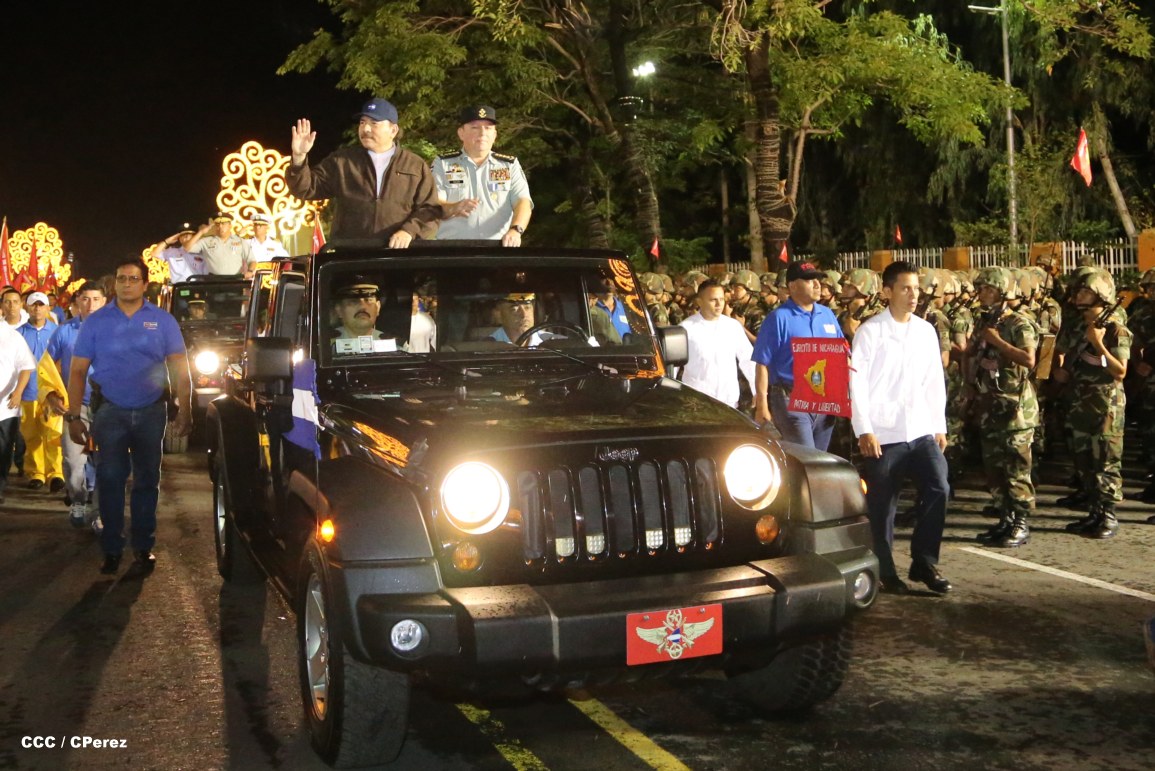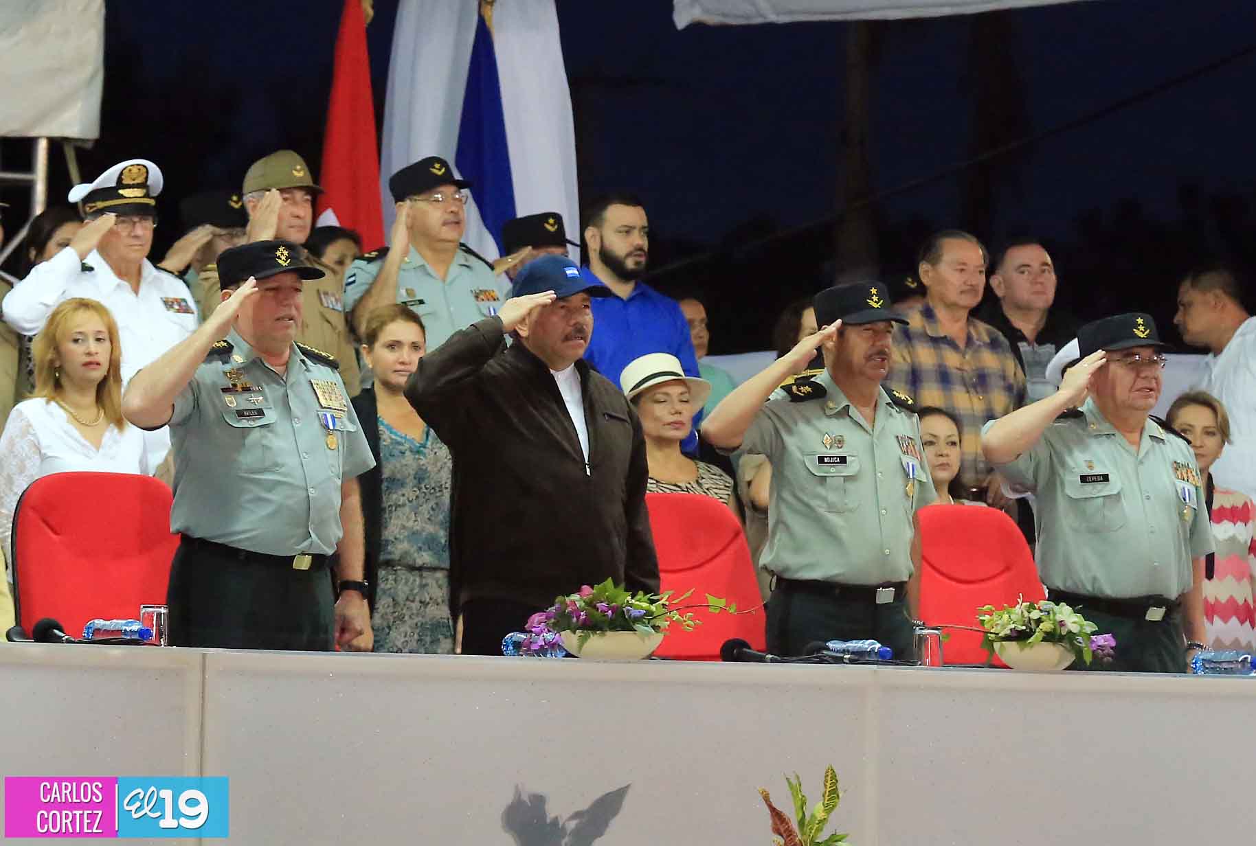 El Presidente de la República, comandante Daniel Ortega Saavedra, junto al Jefe del Ejército, General Julio César Avilés, encabezaron este miércoles el desfile militar en saludo al 35 Aniversario de la fundación de la Fuerzas Armadas de Nicaragua.