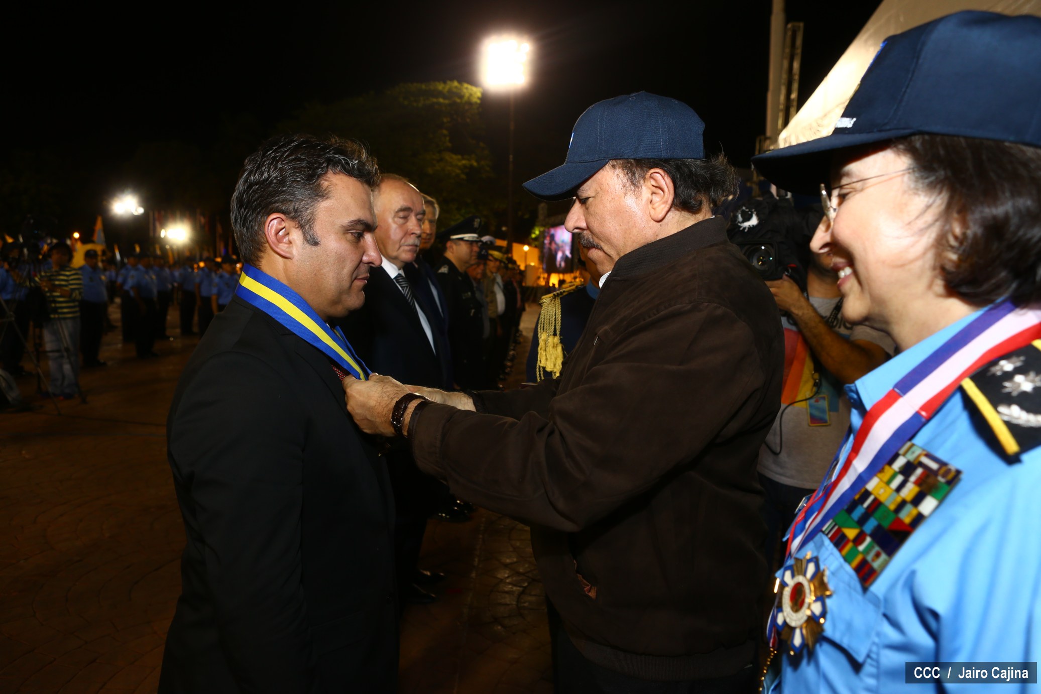 El Presidente de la República, Comandante Daniel Ortega Saavedra, encabezó el acto conmemorativo del 35 Aniversario de la fundación de la Policía Nacional, en el cual destacó la entrega y el compromiso de los miembros de esta institución para salvaguardar la paz y la estabilidad de todos los nicaragüenses.