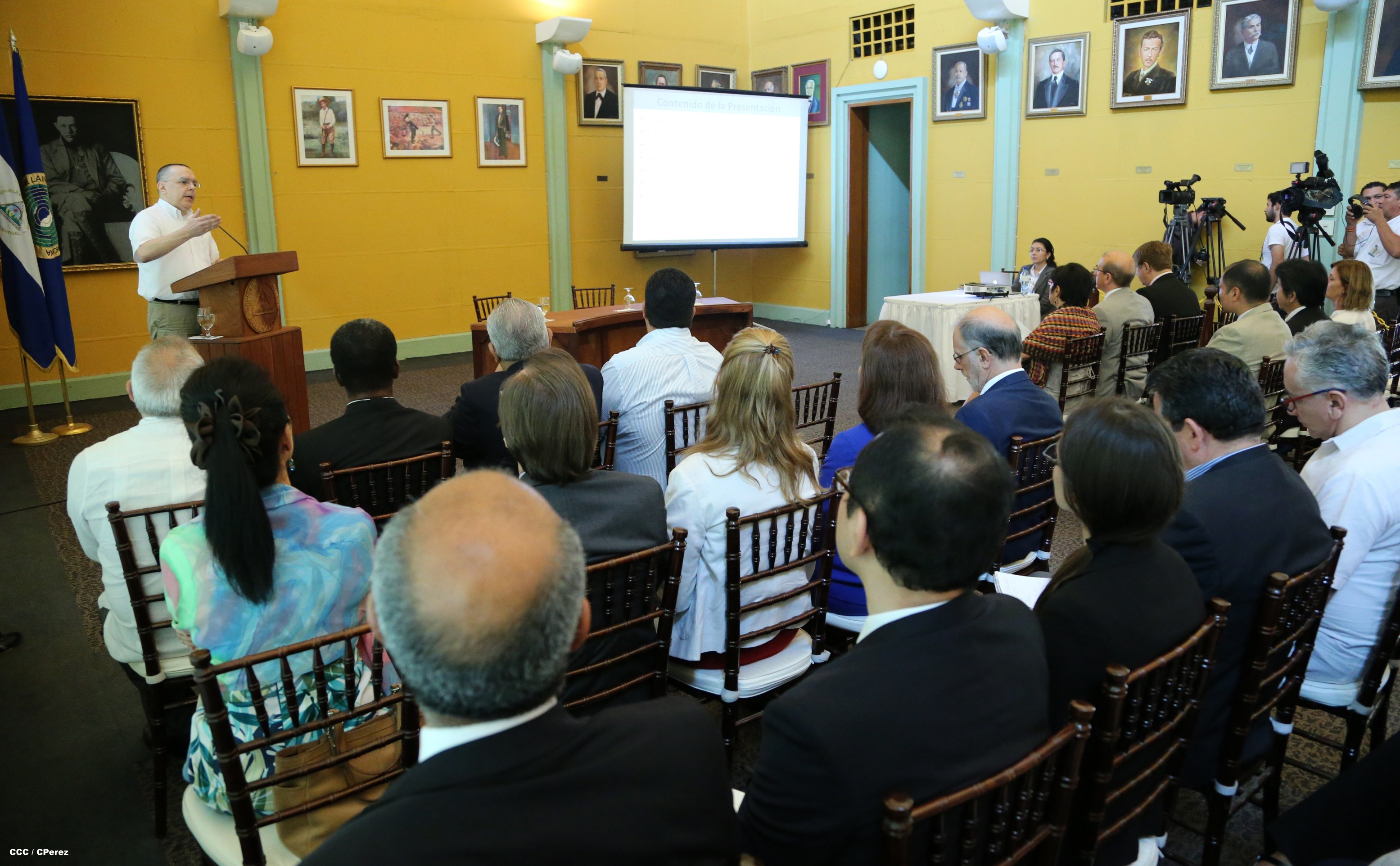 Miembros del Gabinete de Emergencia, presentaron la mañana de este jueves el Plan de Lucha Contra el Ébola ante el Cuerpo Diplomático acreditado en nuestro país, con el objetivo de mostrar las acciones que desde ya desarrolla el Gobierno Sandinista con el objetivo de evitar posibles contagios de esta enfermedad y mantener un control de los extranjeros que ingresan a nuestro país procedentes de los países donde ya se han registrados casos positivos de Ébola.