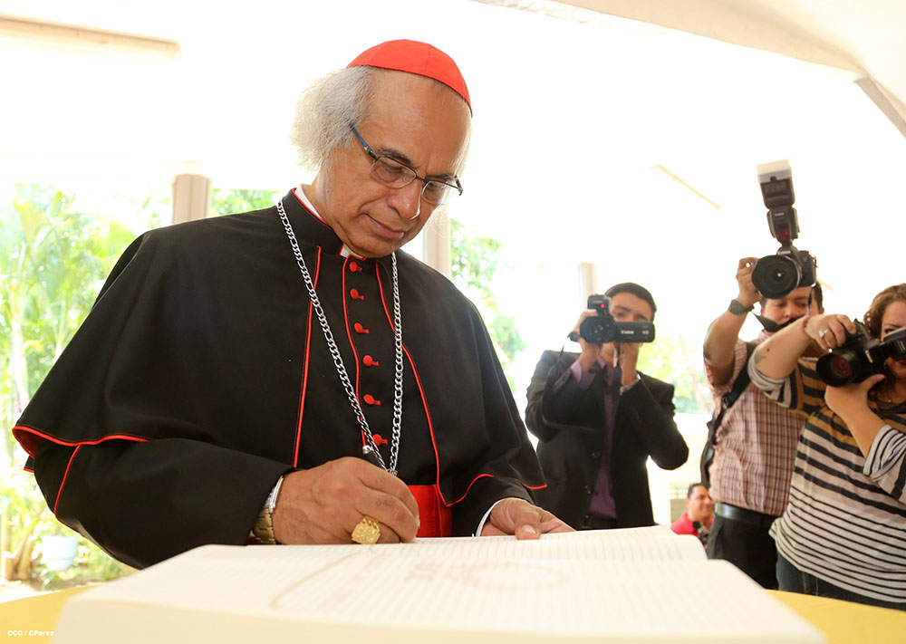 Esta mañana en acto solemne la Universidad de Ciencias Comerciales, le otorgó el Doctorado Honoris Causa a Ser Cardenal Leopoldo José Brenes Solorzano. A la actividad asistieron miembros del cuerpo diplomático, y de otros poderes del Estado Nicaragüense asi como las autoridades de dicha casa de estudios.