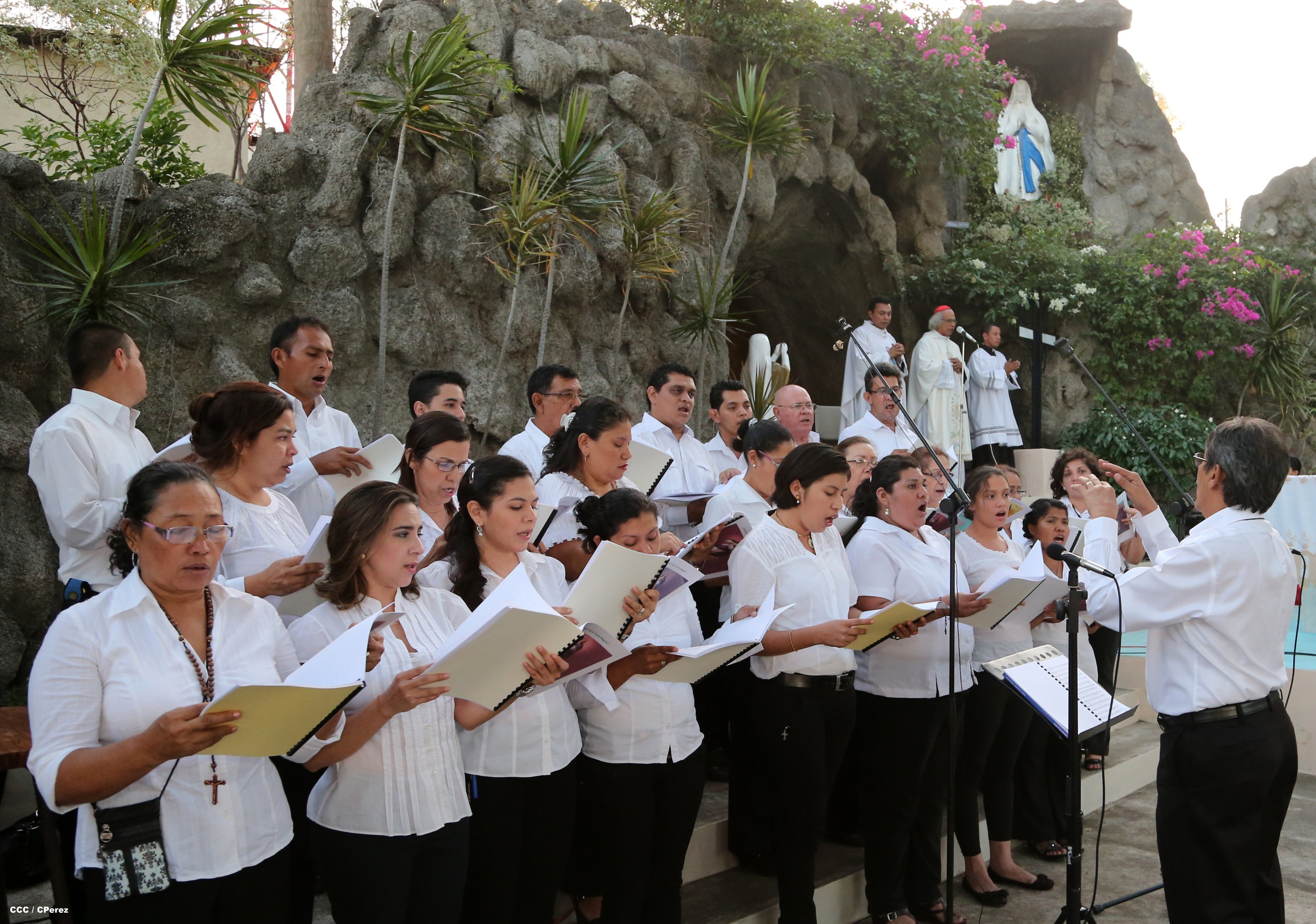El Cardenal Leopoldo Brenes ofrece eucaristía en el Santuario Mariano Nuestra Señora de Lourdes, ubicado en la zona de la Gruta Xavier, en Managua.