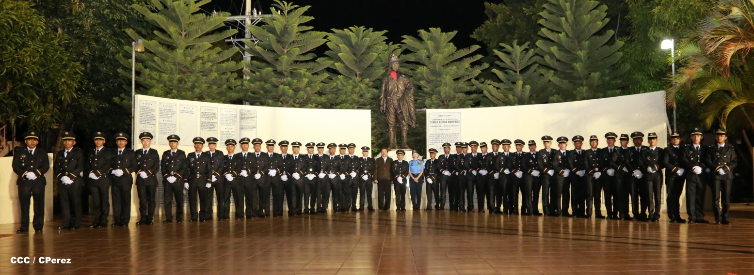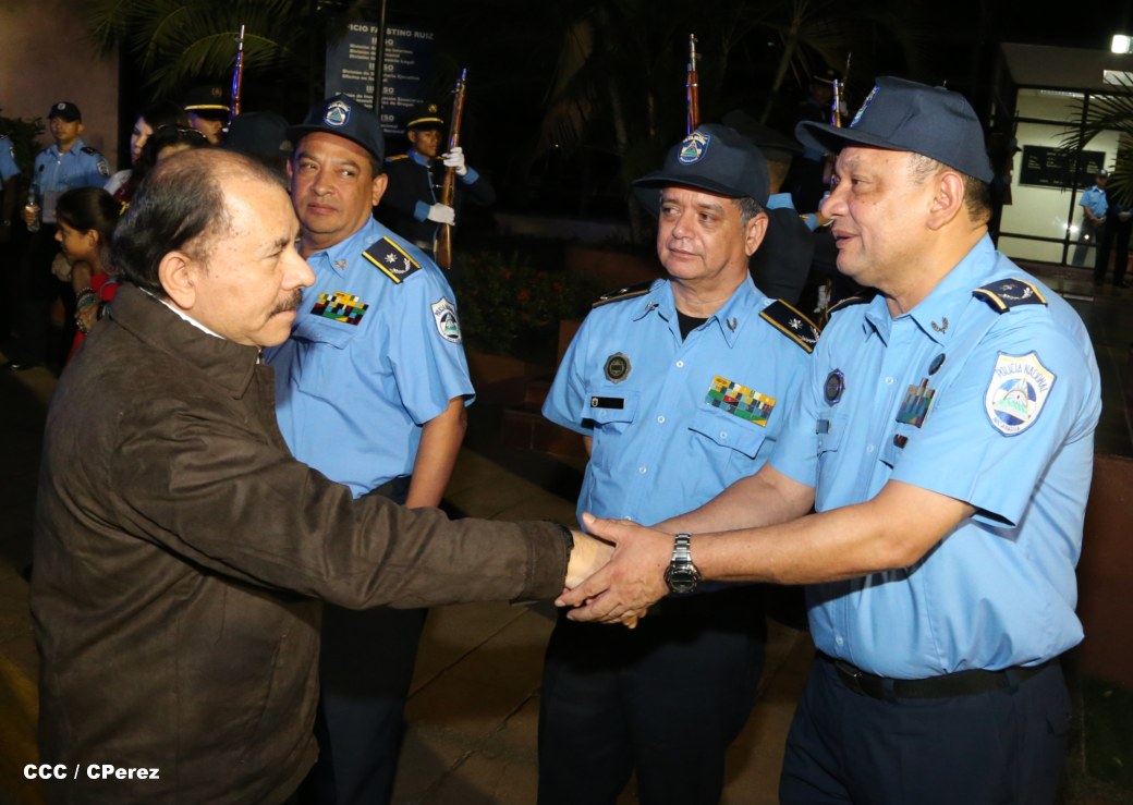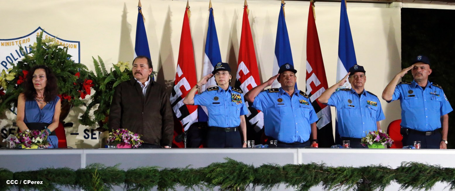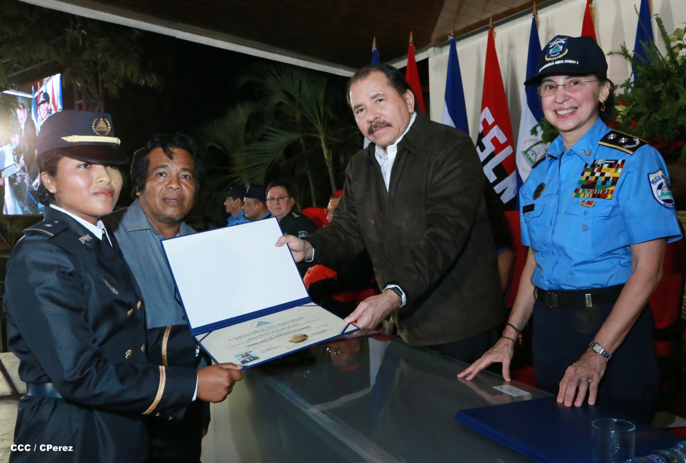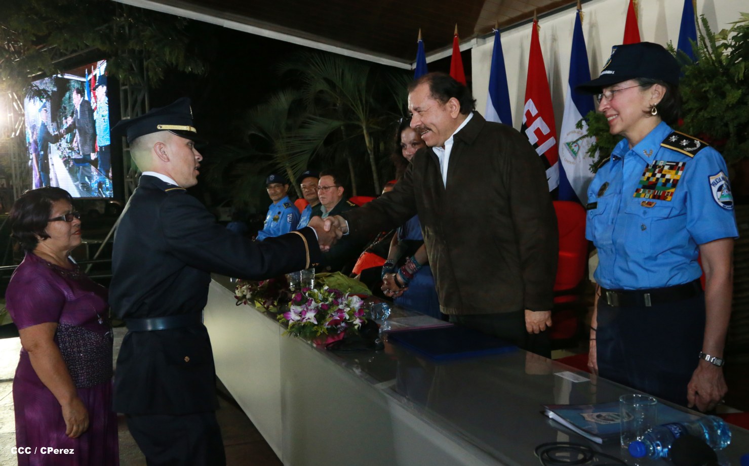 El Presidente de la República, Comandante Daniel Ortega, y la Coordinadora del Consejo de Comunicación y Ciudadanía, Compañera Rosario Murillo, presidieron este martes la XVII Promoción de Cadetes y Técnicos Medios de la Policía Nacional.