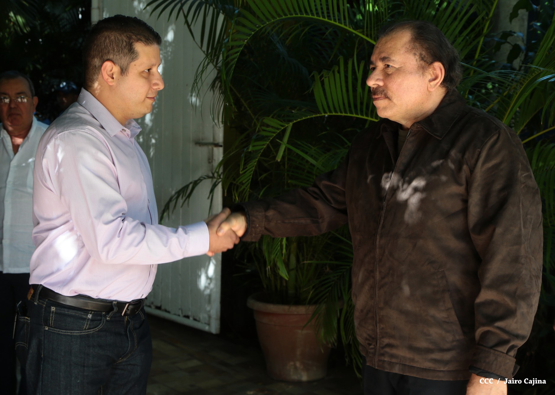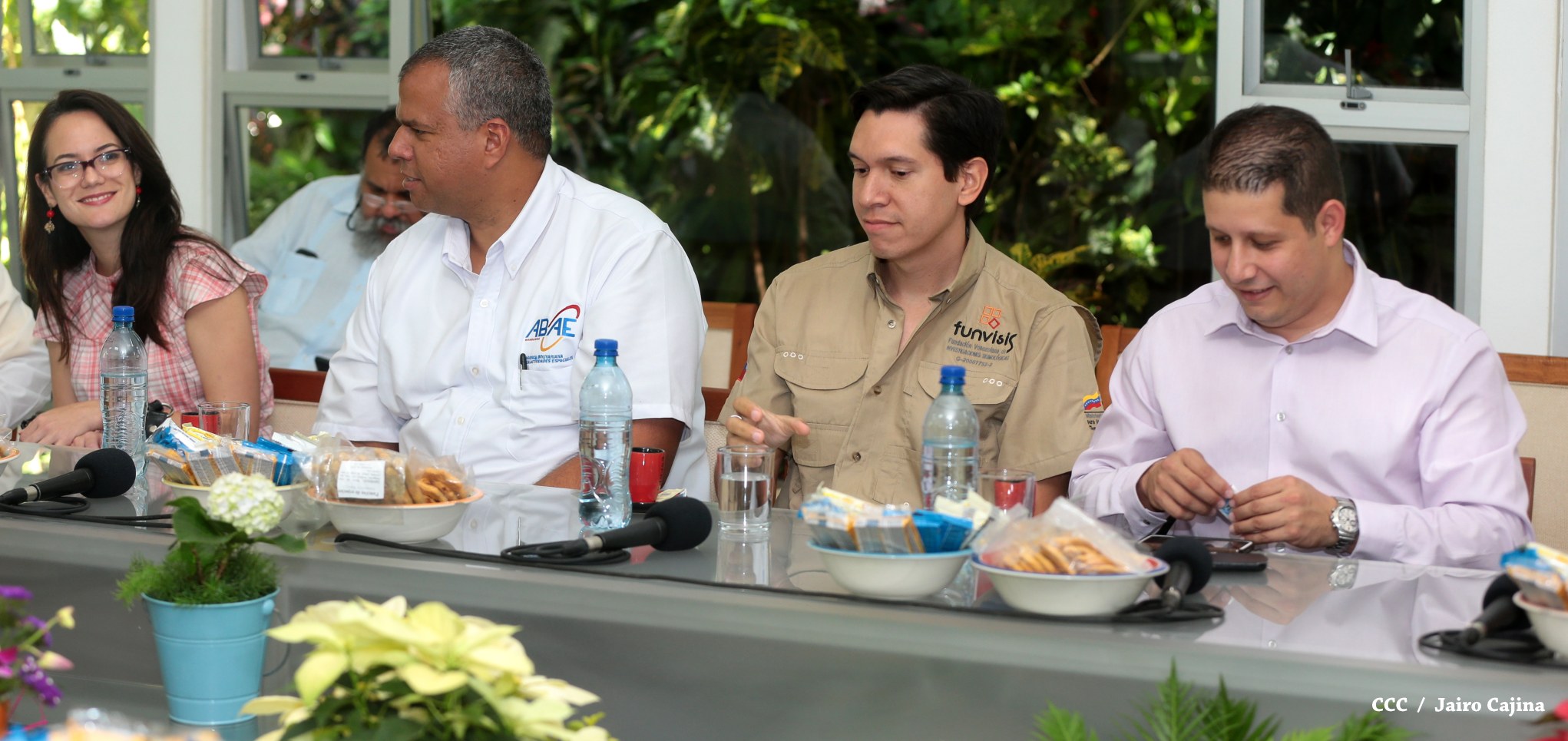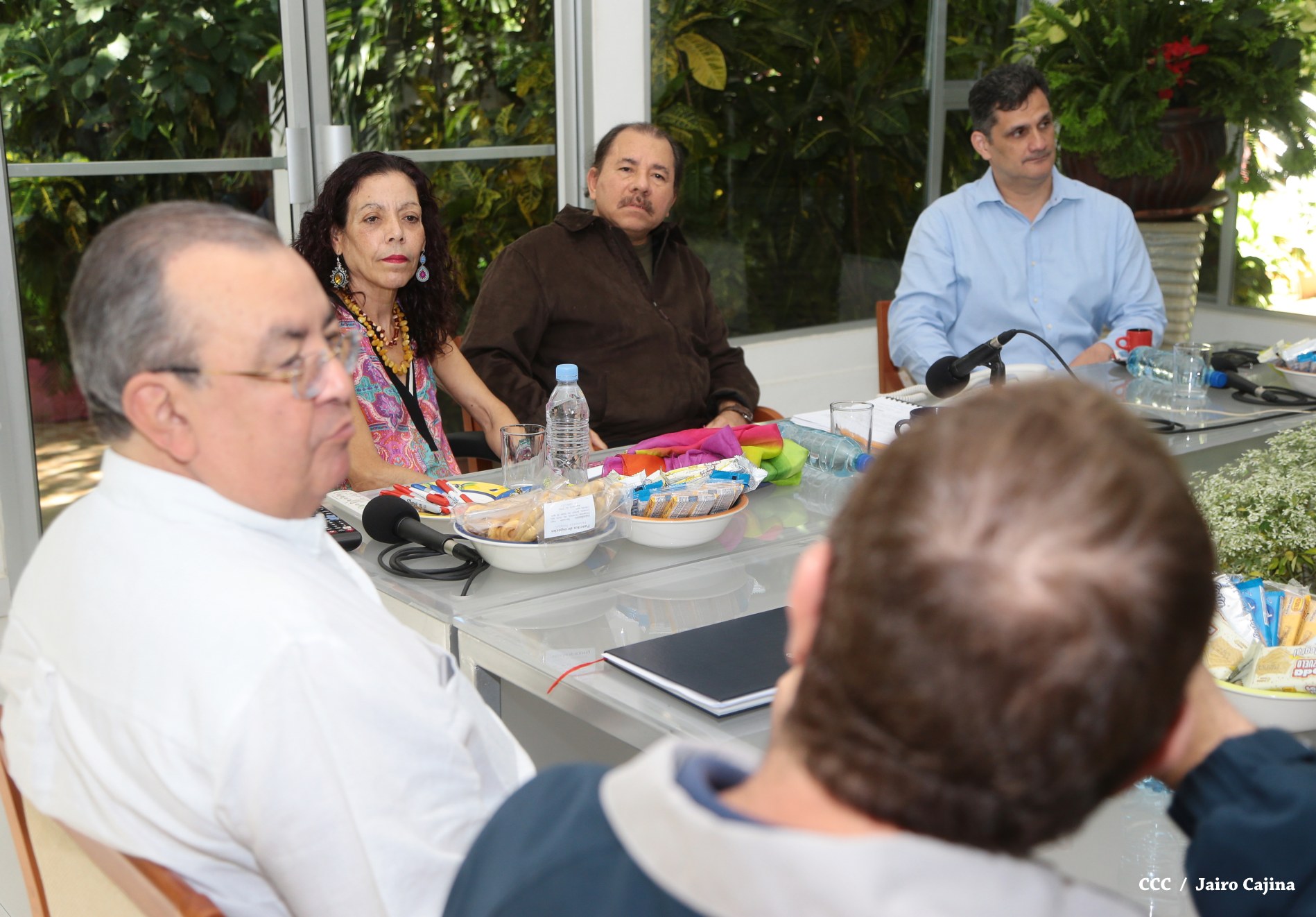El Presidente Daniel Ortega y la Compañera Rosario Murillo reunidos con una Delegación de Alto Nivel de la República Bolivariana de Venezuela, encabezada por el Ministro de de Educación Superior, Ciencia y Tecnología de ese hermano país, compañero Manuel Fernández.