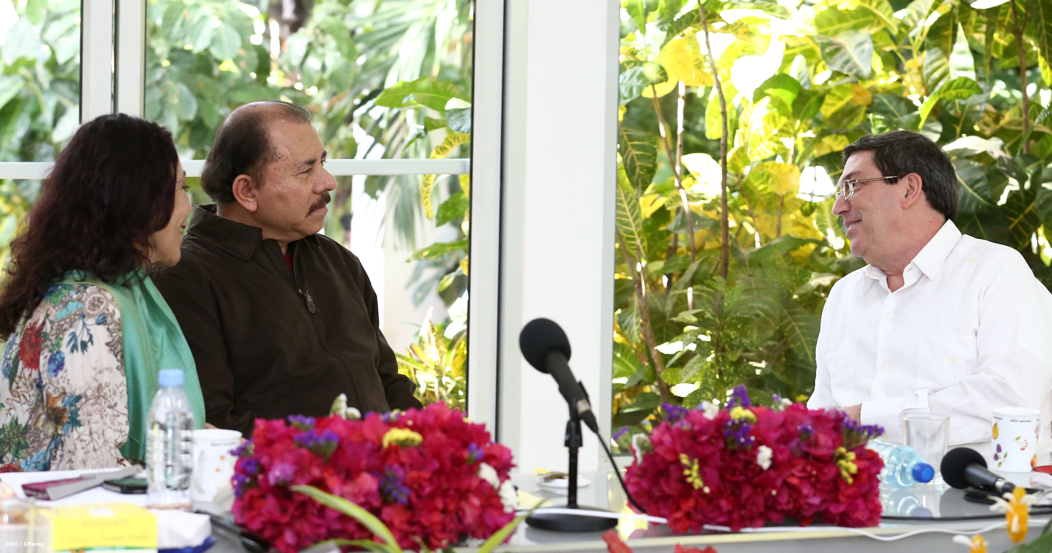 El Presidente de la República, Comandante Daniel Ortega Saavedra, y la Coordinadora del Consejo de Comunicación y Ciudadanía, Compañera Rosario Murillo Zambrana, se reunieron este miércoles con el Canciller de la hermana República de Cuba, Compañero Bruno Rodríguez, quien realizó una visita privada a nuestro país.