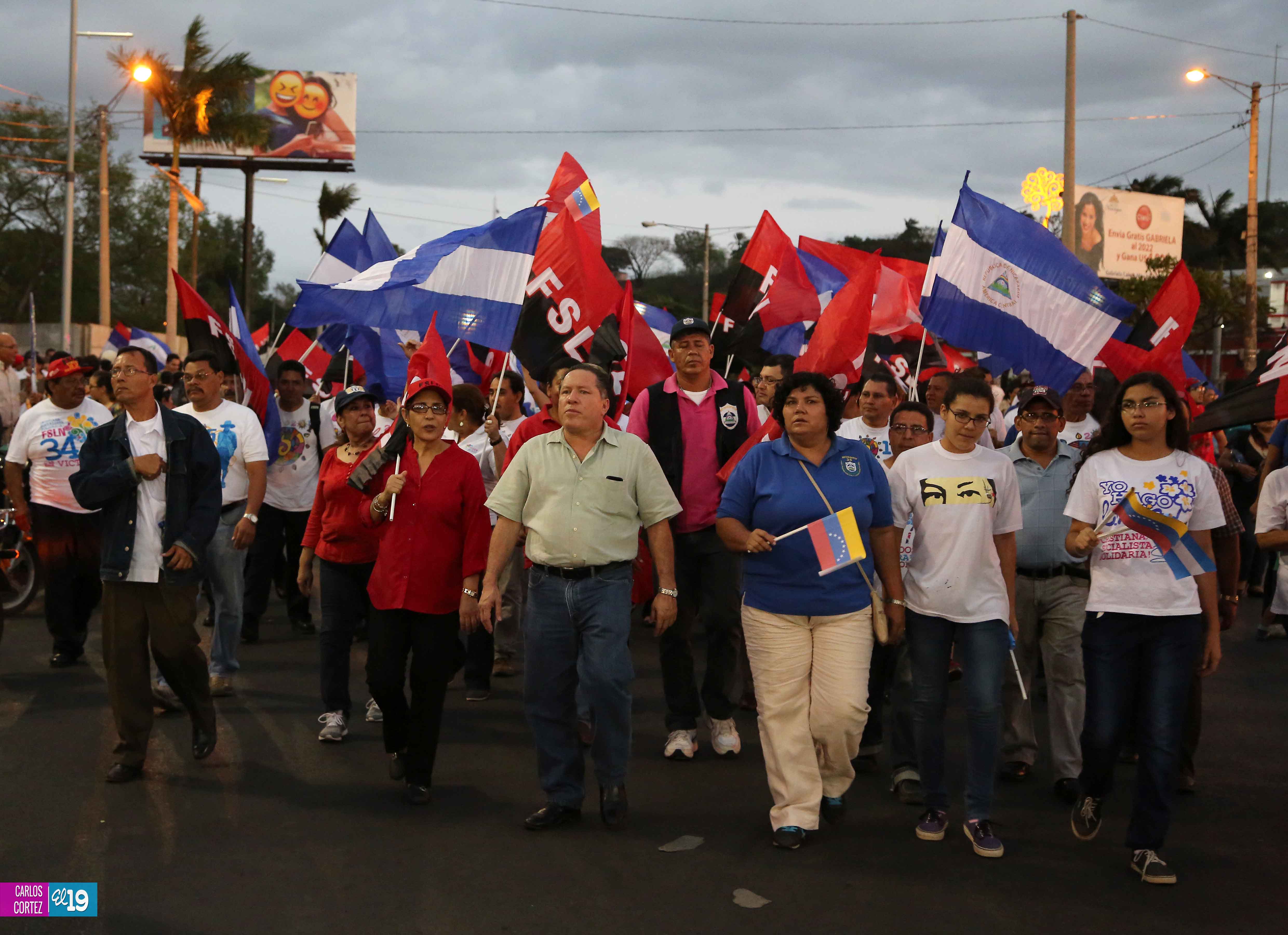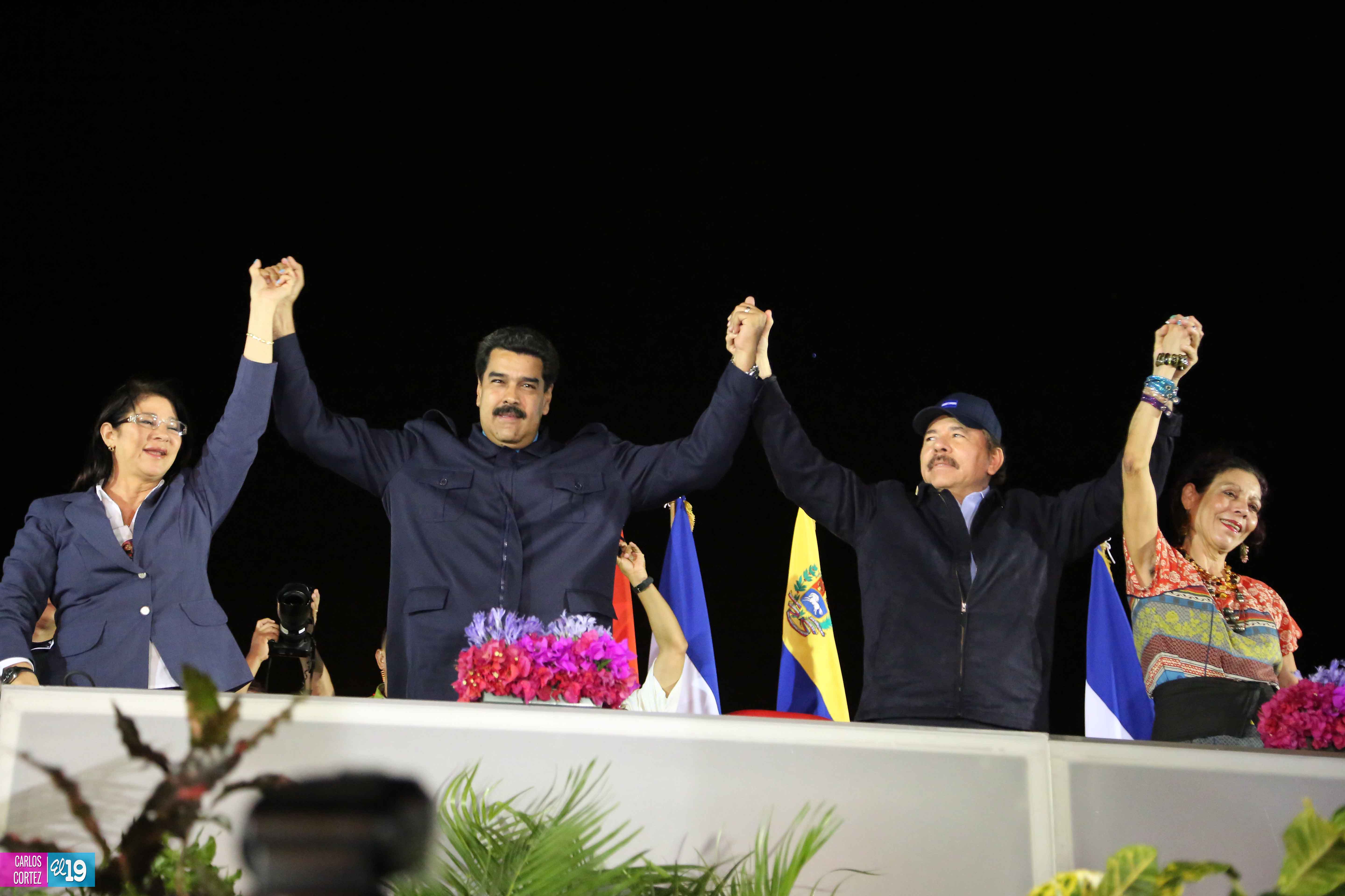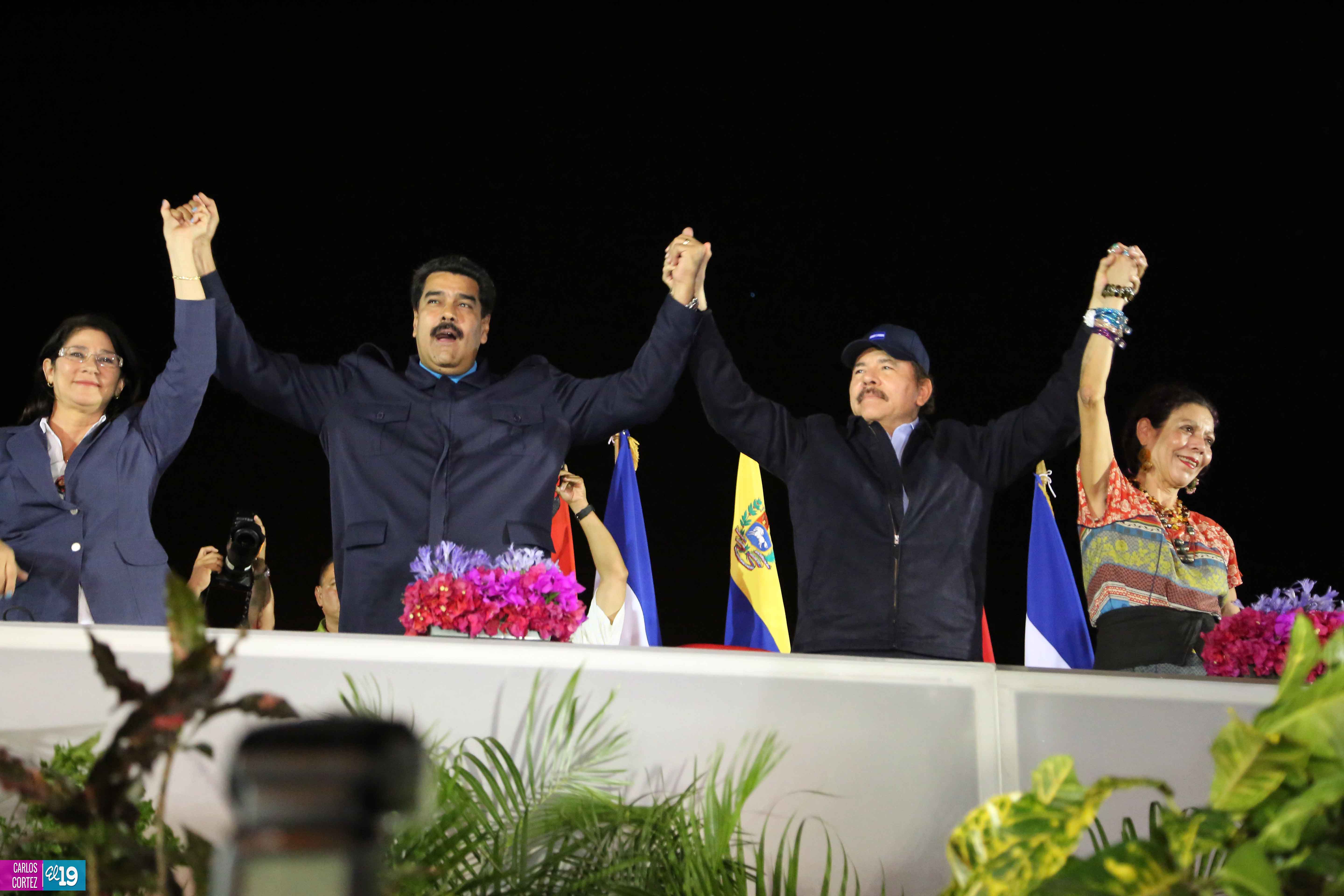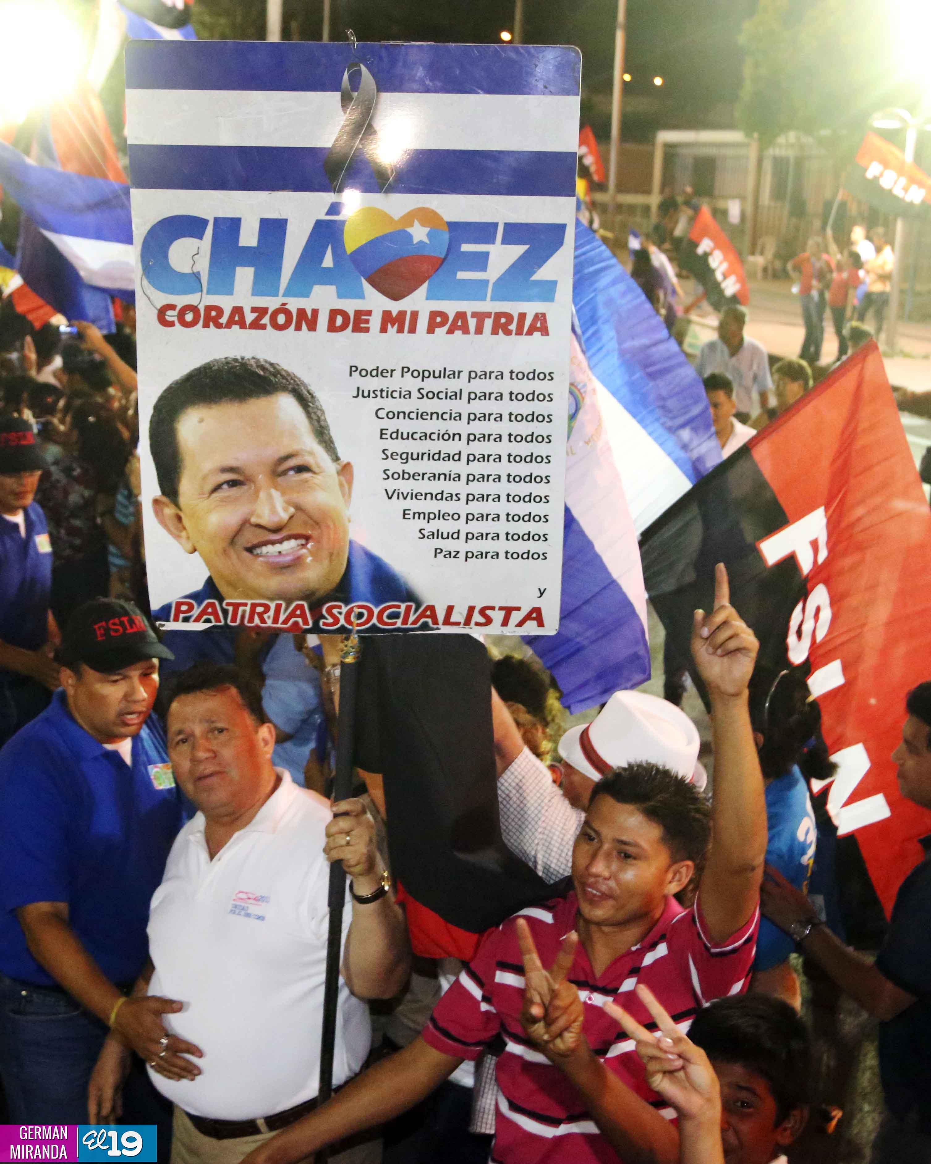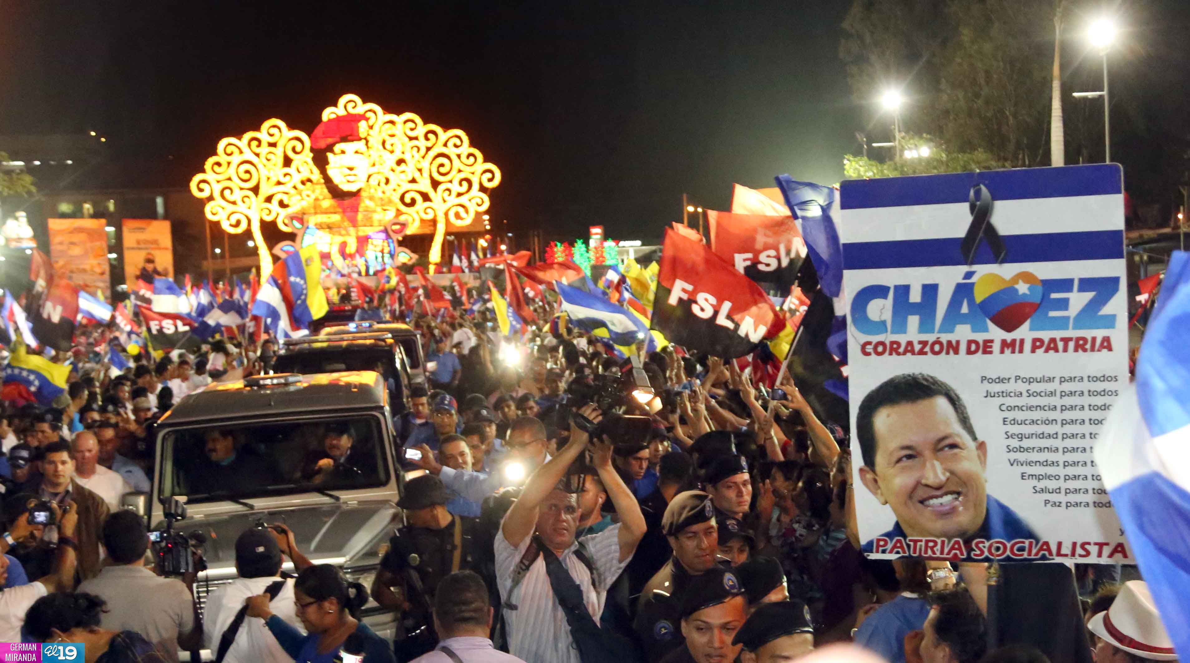 Miles de nicaragüenses colmaron la Avenida de Bolívar a Chávez y la Plaza de la Revolución, en Managua, en una expresión masiva de respaldo total y militante a la República Bolivariana de Venezuela, su Revolución y al Presidente Nicolás Maduro Moros, quien visitó nuestro país este viernes y fue condecorado con la Orden Augusto C. Sandino en su Grado Máximo Batalla de San Jacinto, la máxima condecoración que otorga el Estado Nicaragüense.