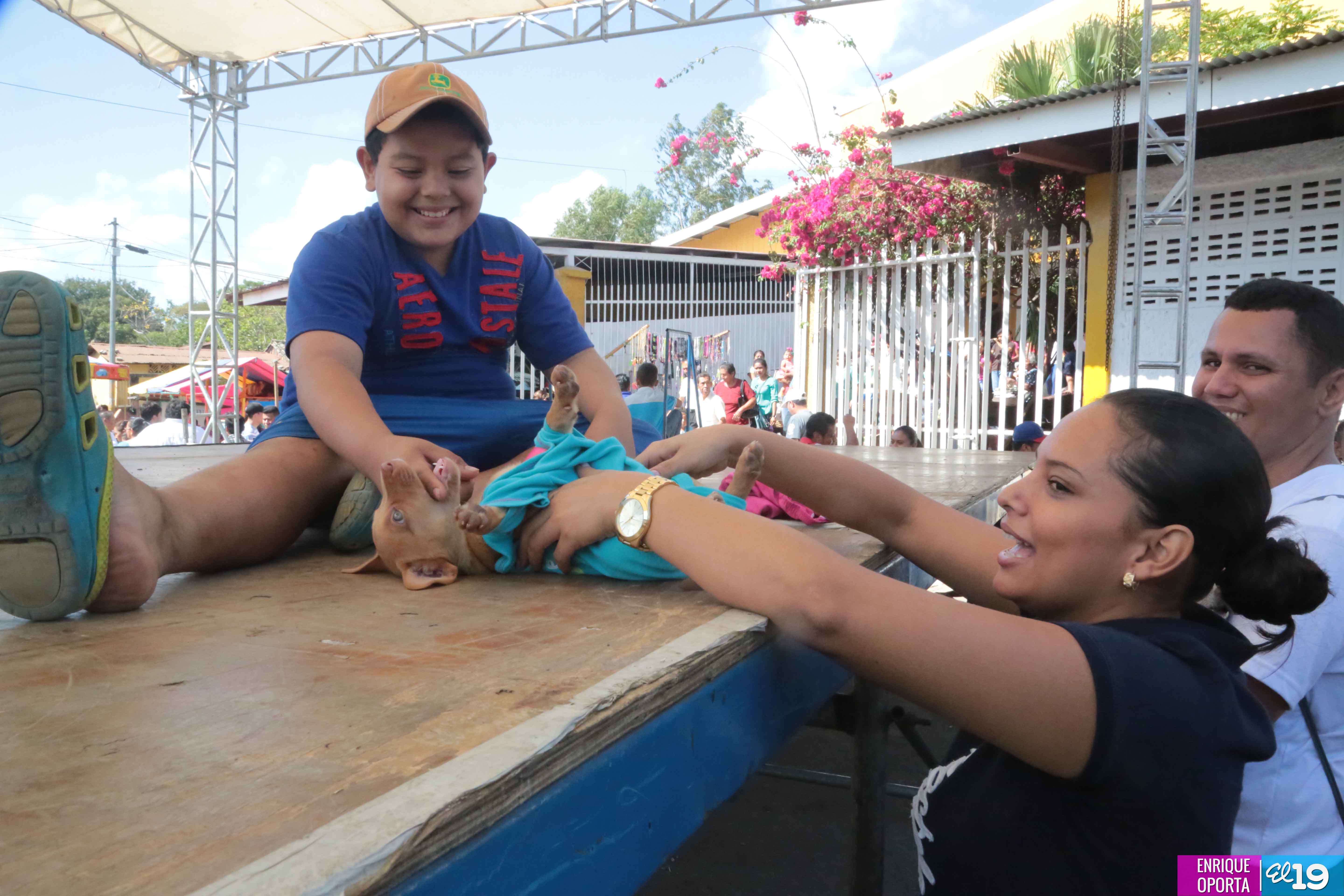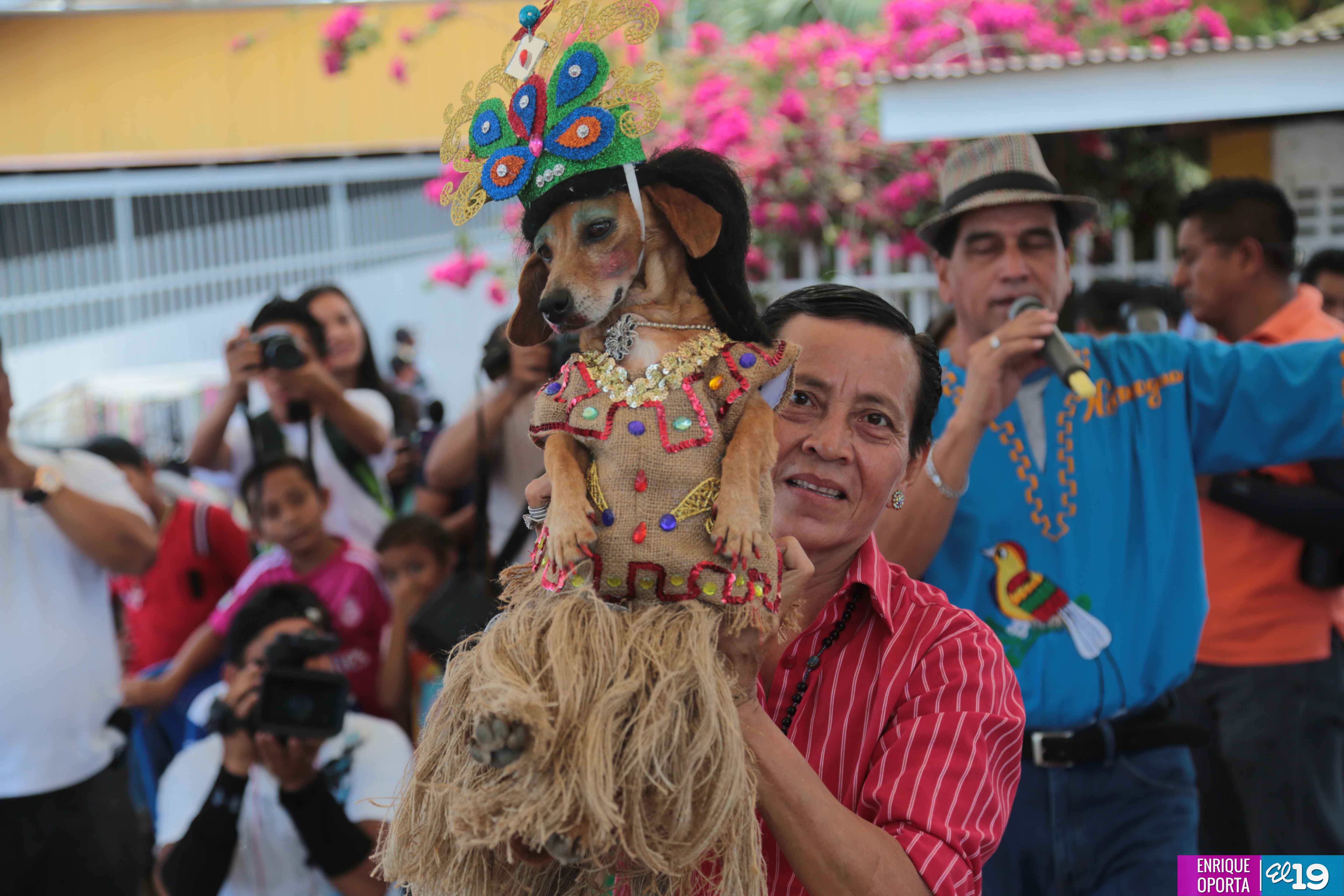 Engalanados con trajes coloridos y motivos especiales, centenares de perros de todas las razas fueron presentados a San Lázaro, durante la celebración de su solemnidad que se realiza en el municipio de Masaya.