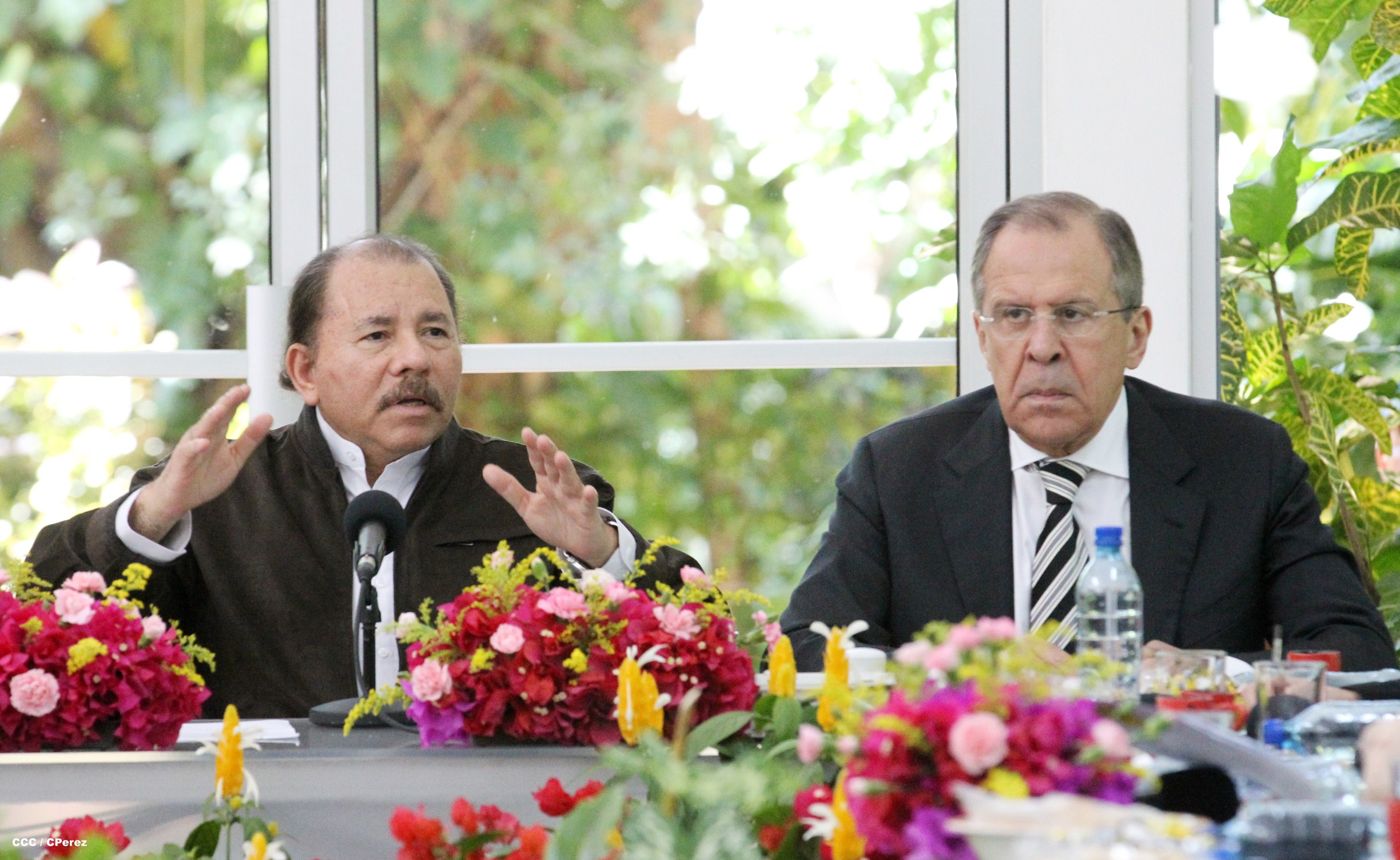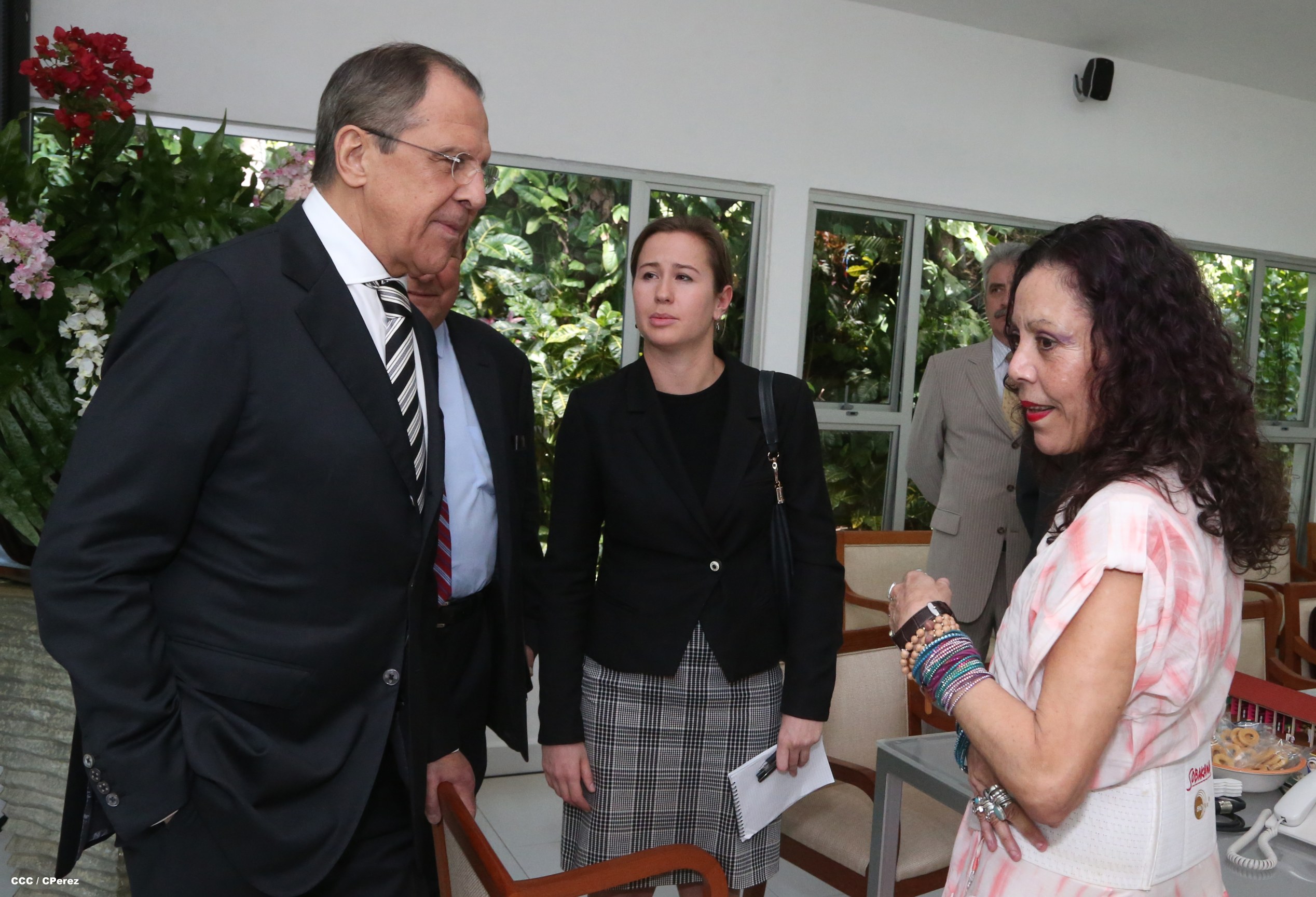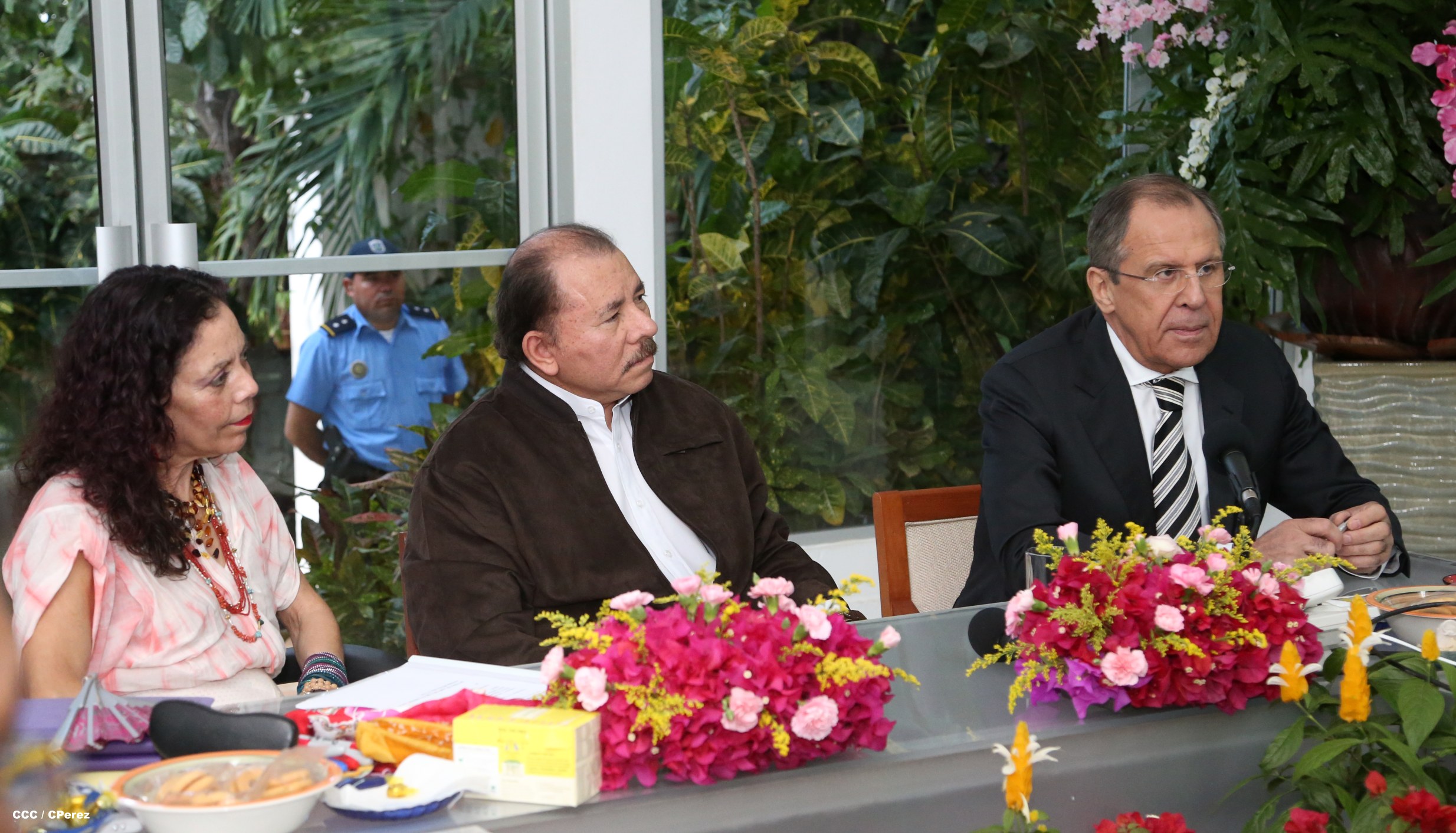 El Presidente de la República, Comandante Daniel Ortega, y la Coordinadora del Consejo de Comunicación y Ciudadanía, Compañera Rosario Murillo, sostuvieron este 25 de marzo un encuentro con el Canciller de la Federación de Rusia, Serguei Lavrov en Managua.