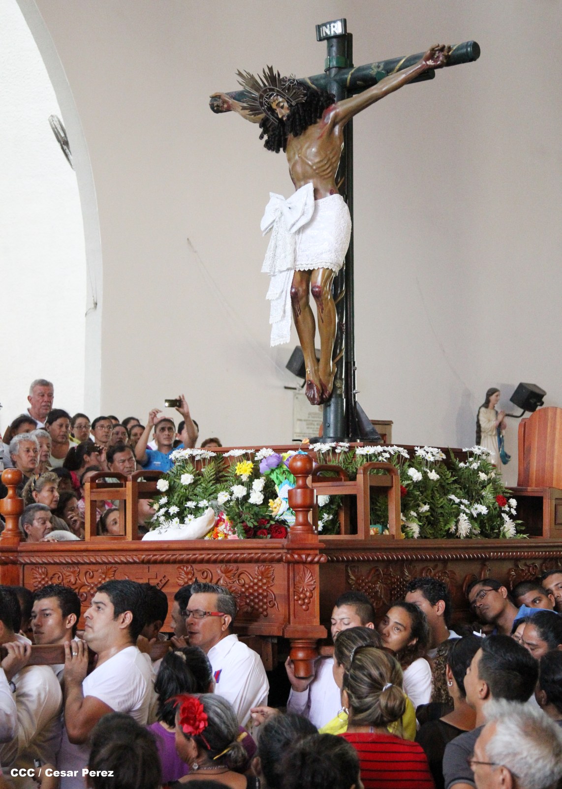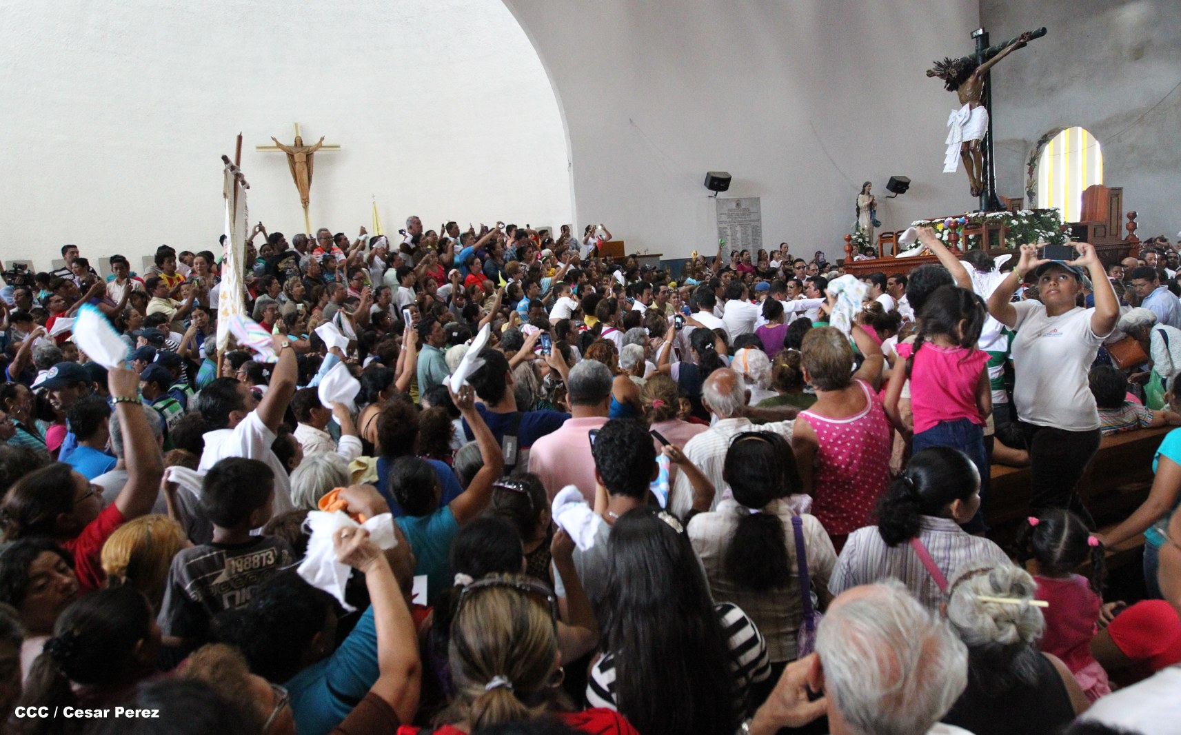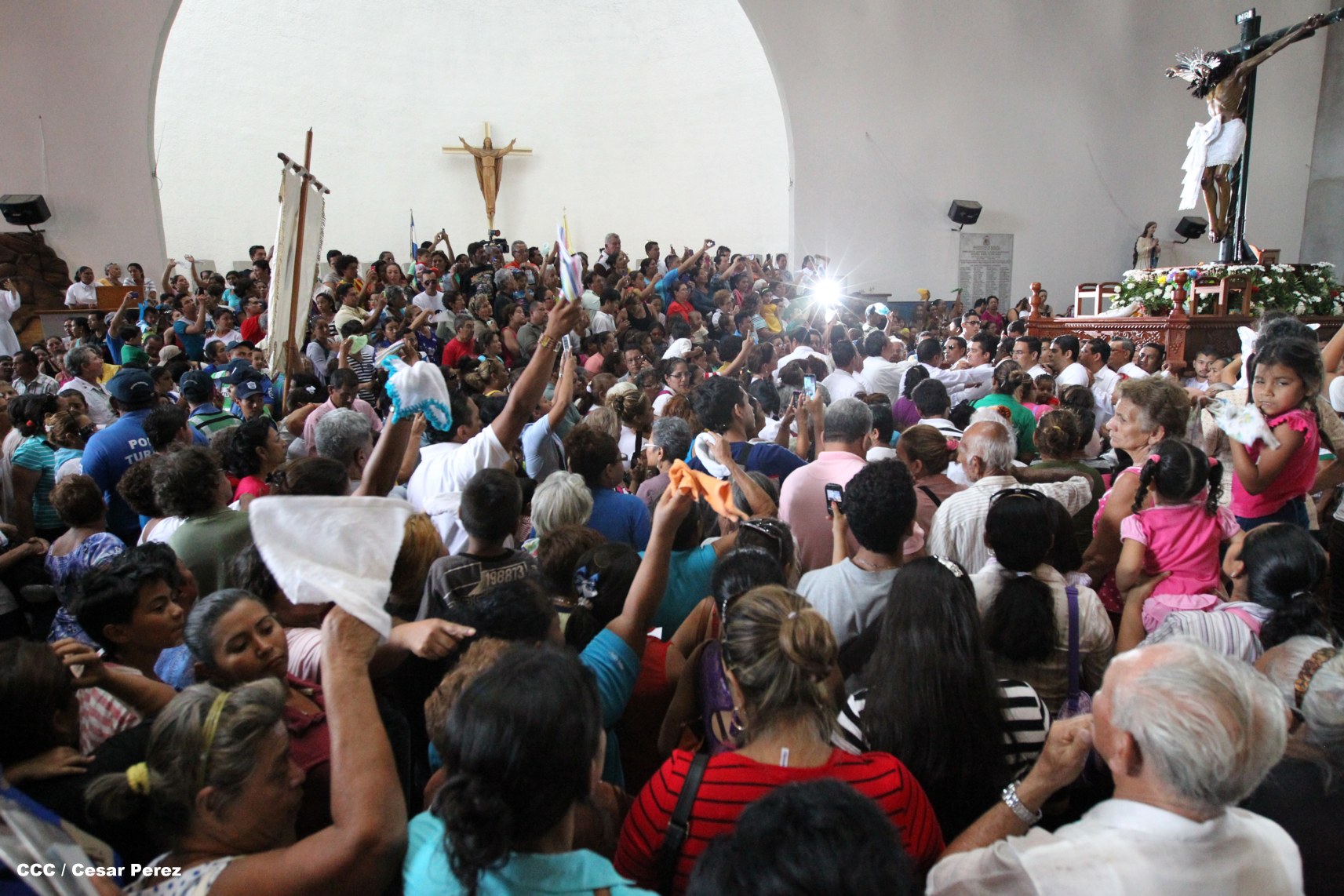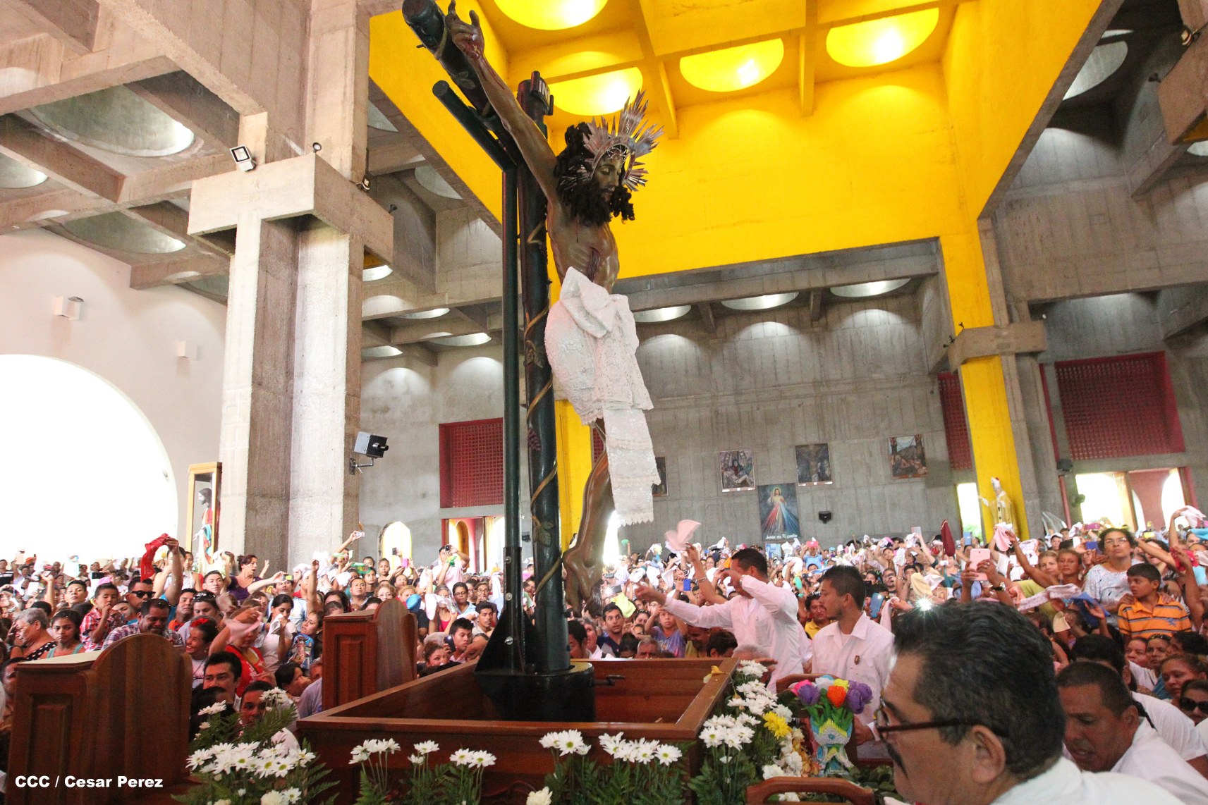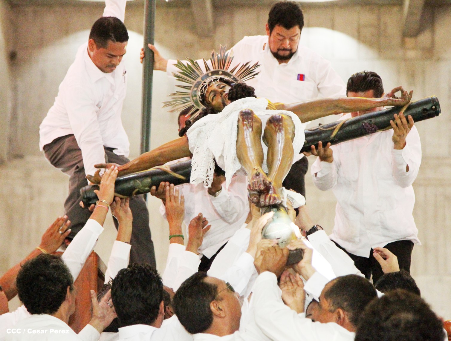 “La Sangre de Cristo tiene Poder”, con esta y otras frases de alabanza, decenas de nicaragüenses de todo el país, participaron de la subida de la santa imagen en la Catedral Metropolitana de Managua, lo que hace culminar oficialmente los actos religiosos relacionados con la Semana Santa.